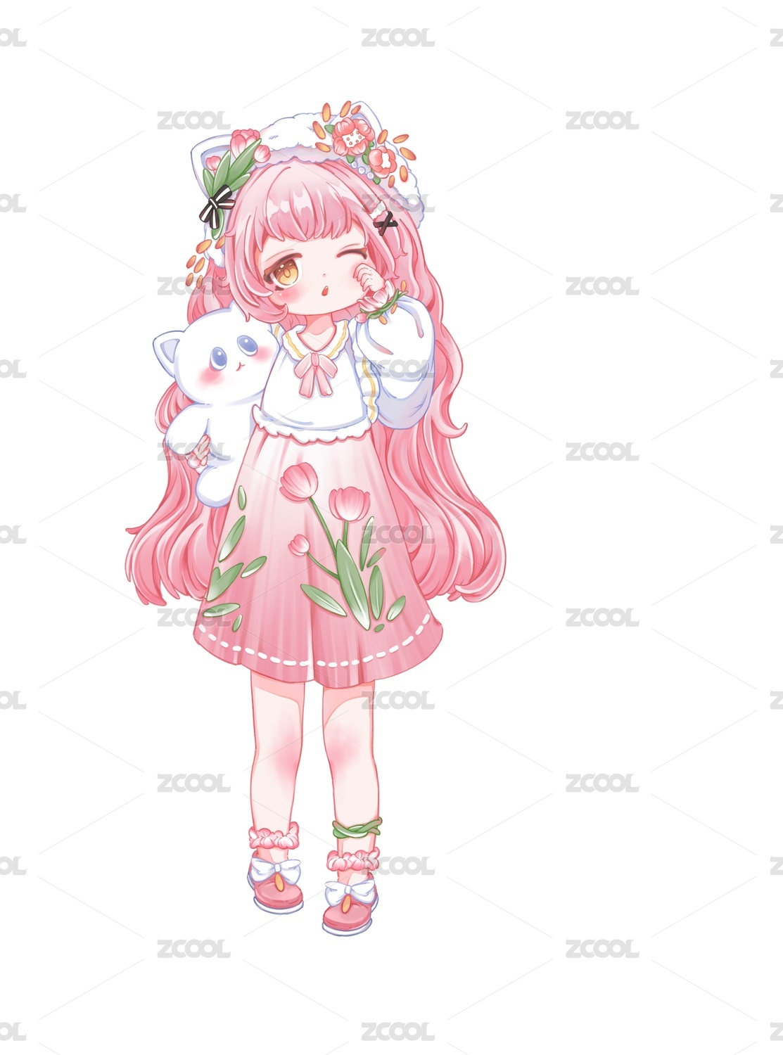 粉色裙子Q版ip女孩
