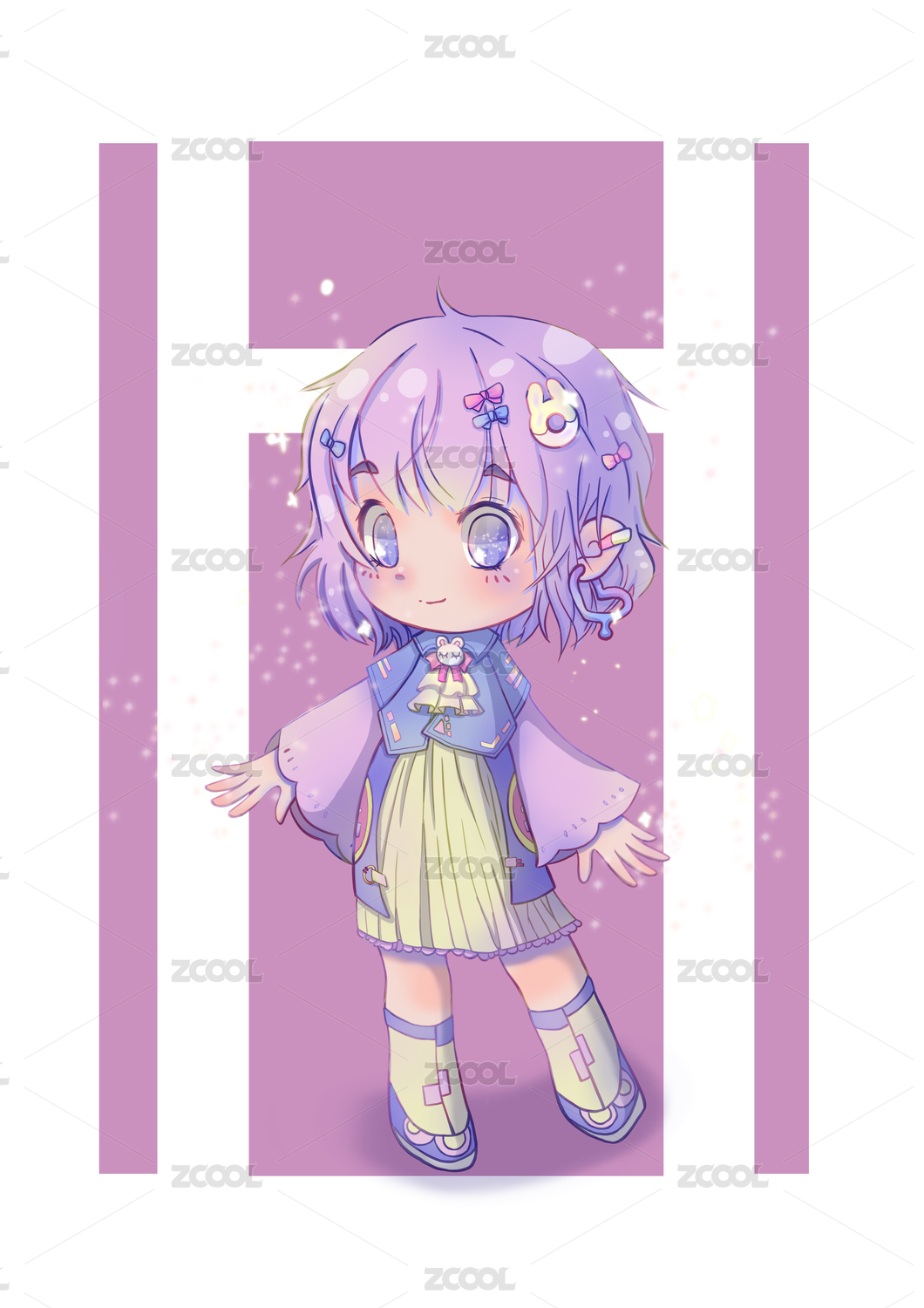 Q版狐狸耳粉发古风女孩