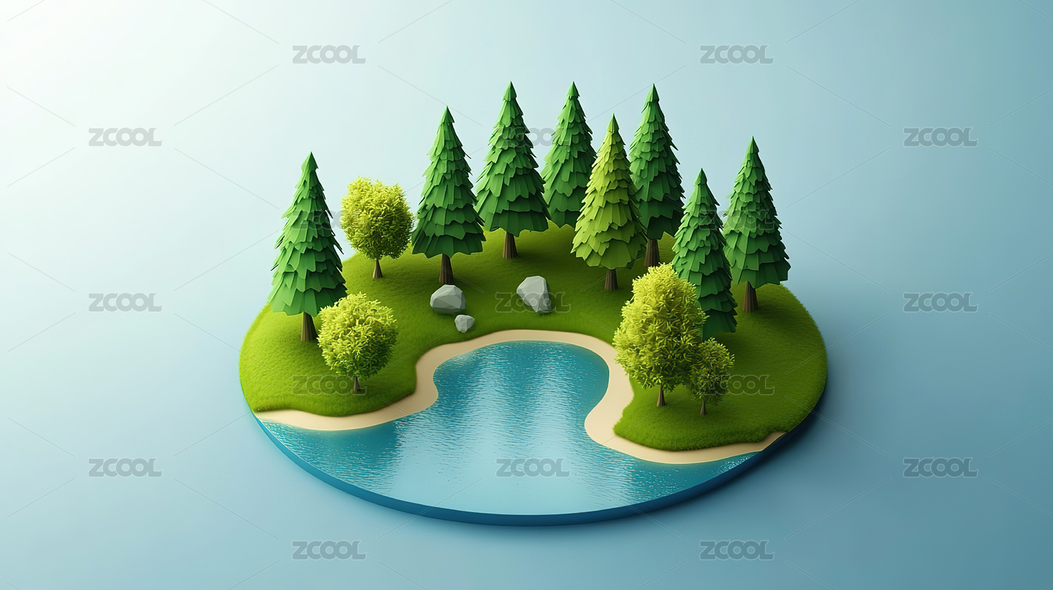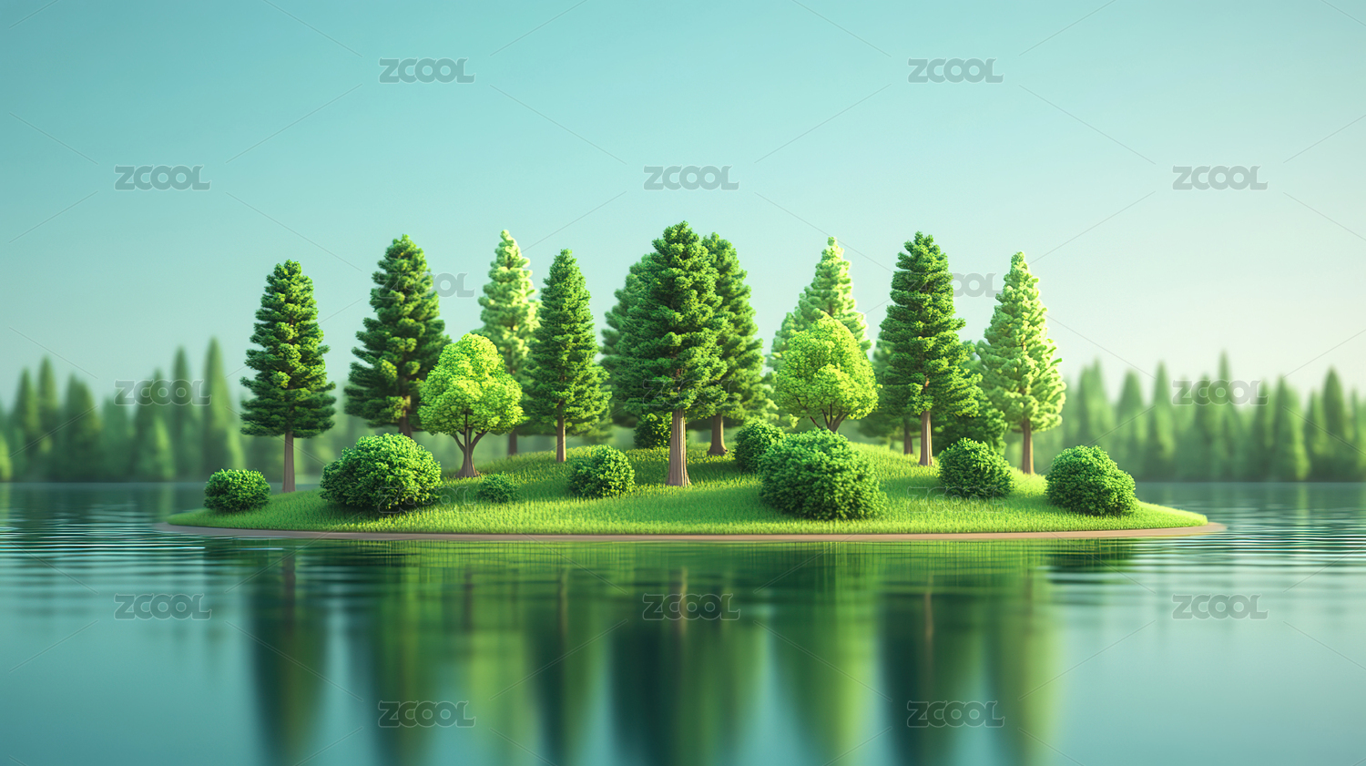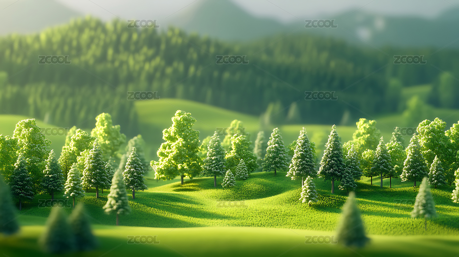 建模,3D,模型,三维,场景,立体,公益,绿色,植物,树