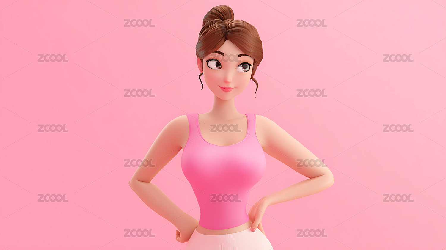 3D卡通女孩穿着运动服,自信站立姿势