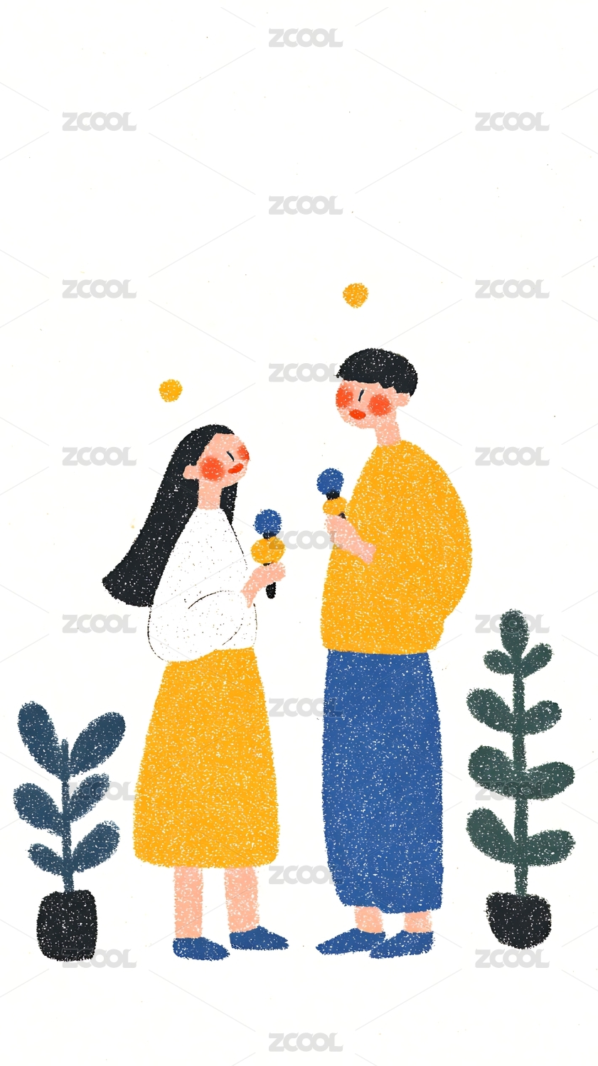 情侣自拍 雨伞 扁平风格 绘本风格 壁纸
