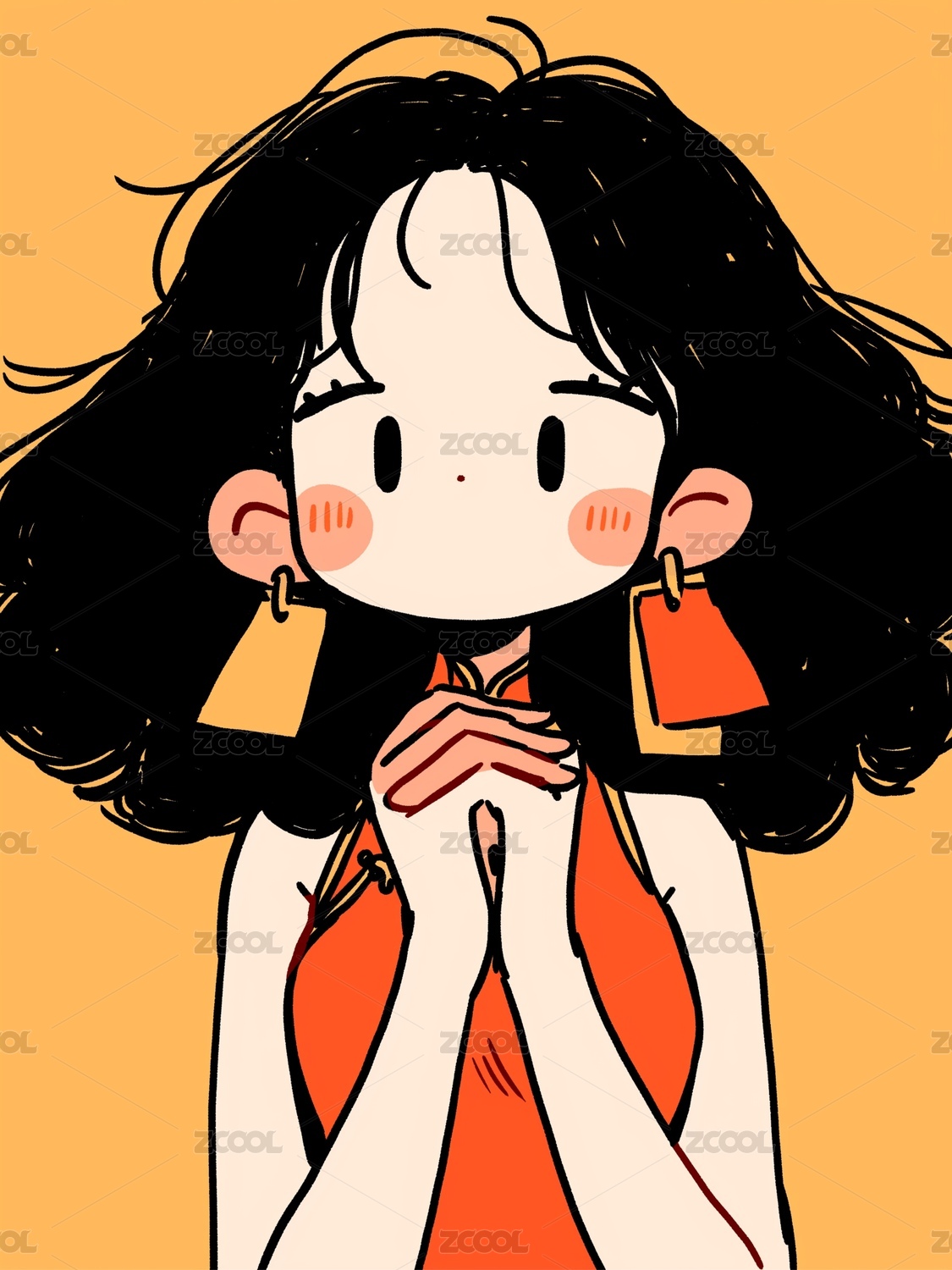 拿红包的女生插画