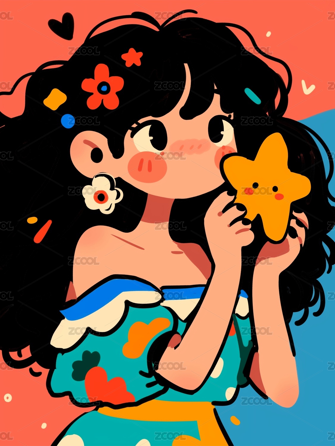 星星女孩的插画