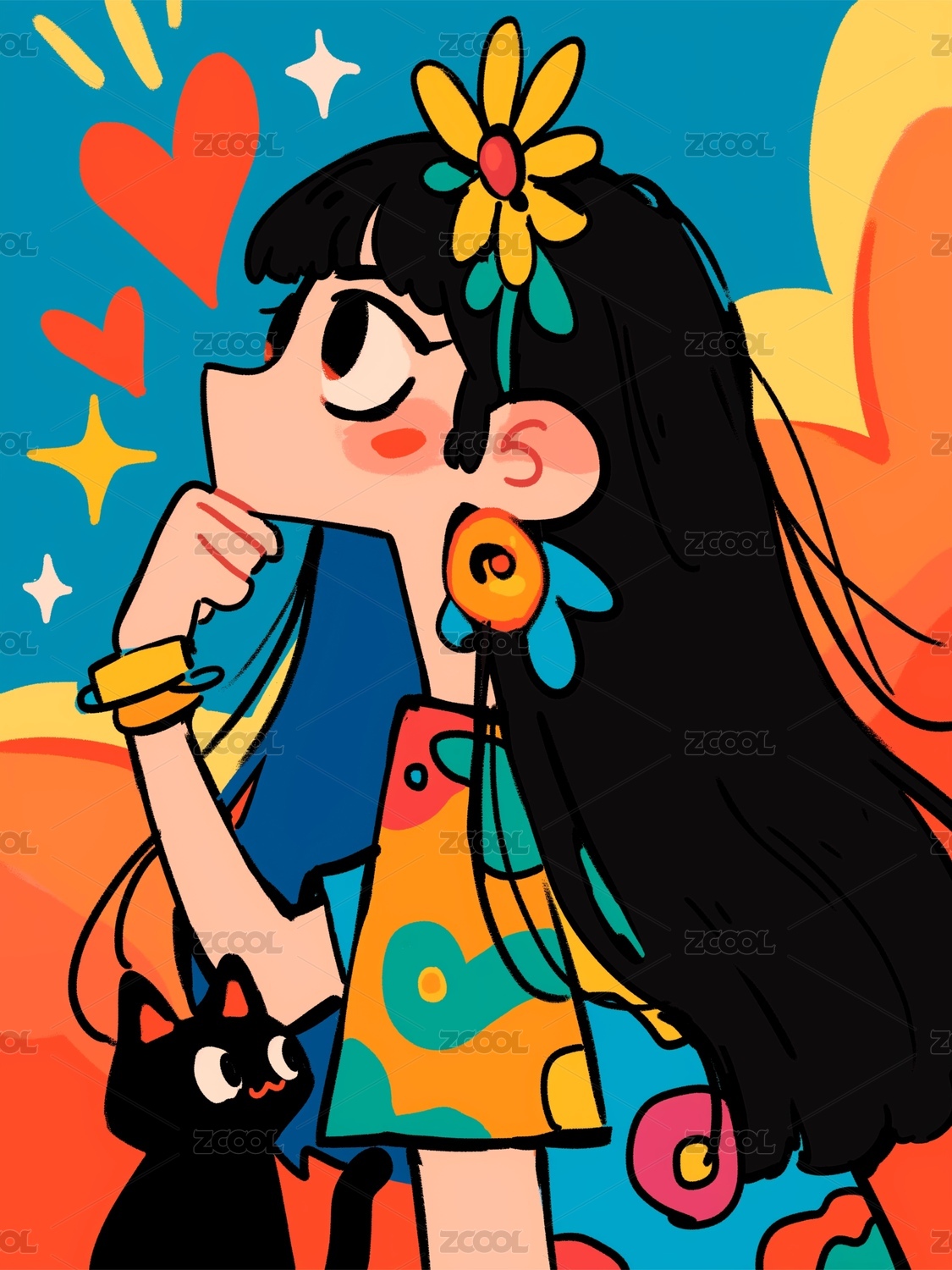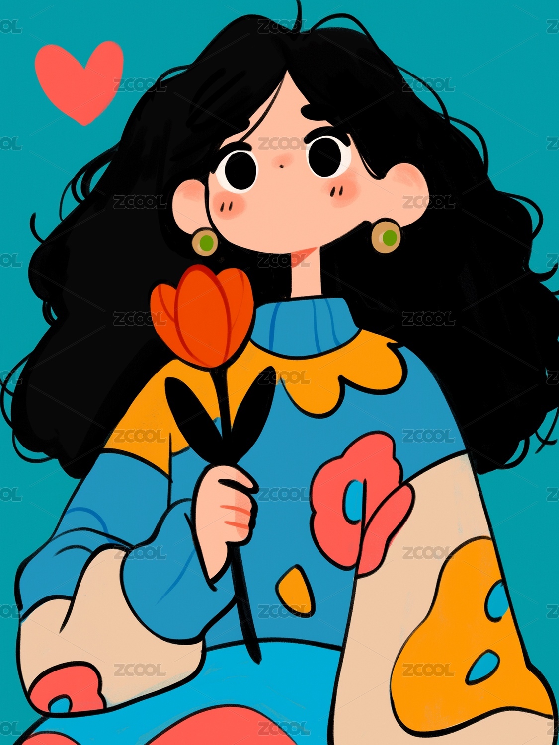 涂鸦风,女孩,插画,海报,鲜花,素材,简笔画