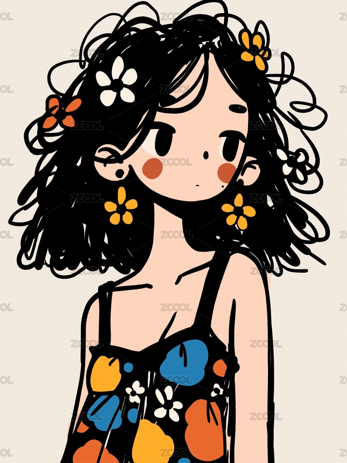 涂鸦风的女孩插画