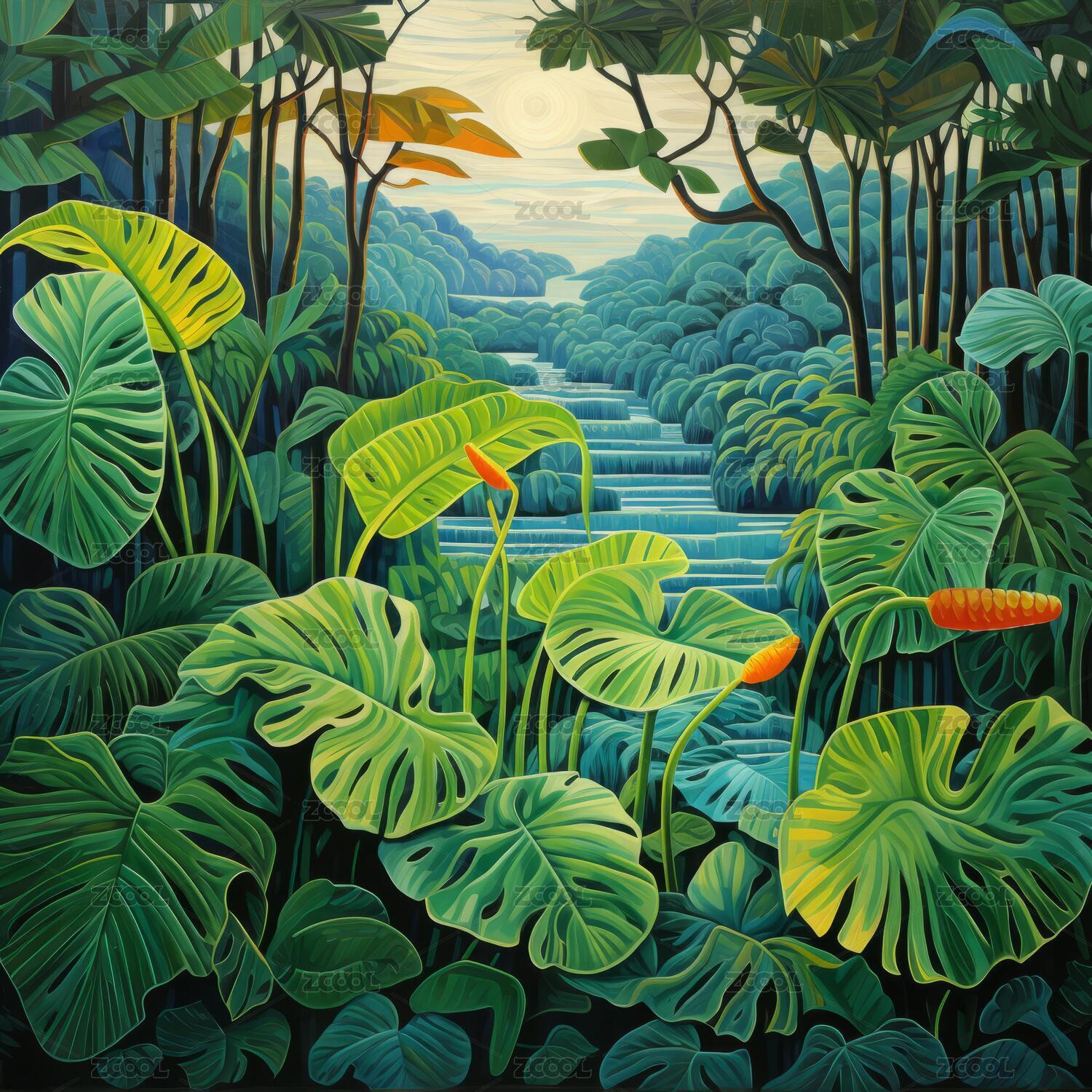 清新明亮羊毛毡毛绒自然风景3D卡通插画