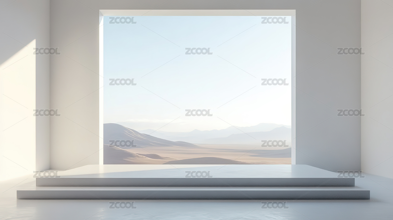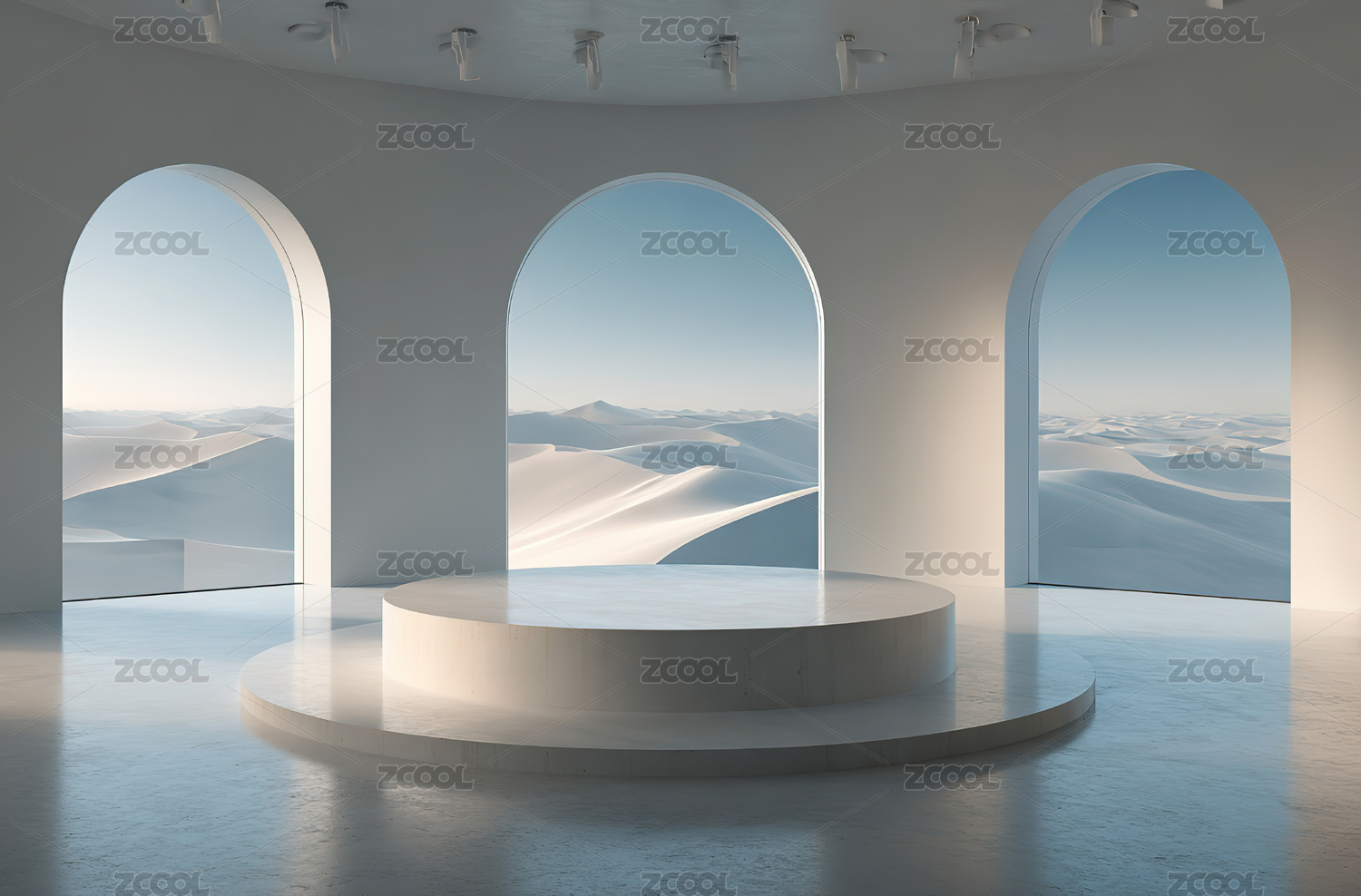 沙漠景观前的圆形展示台