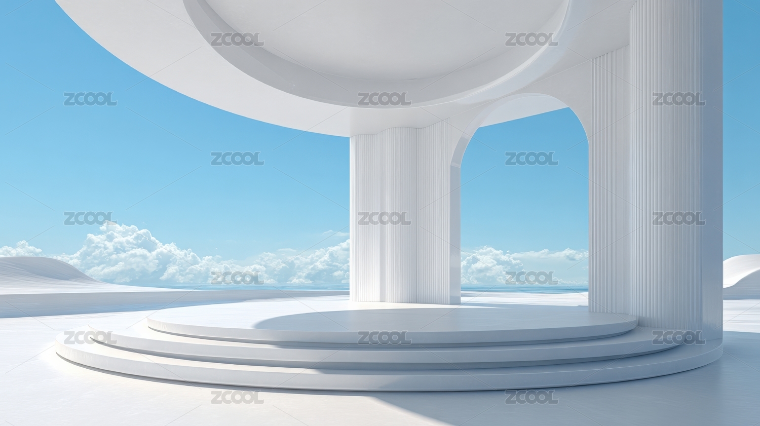 产品展台,圆形,三维,空间,场景,山,柱子,简单,现代,设计