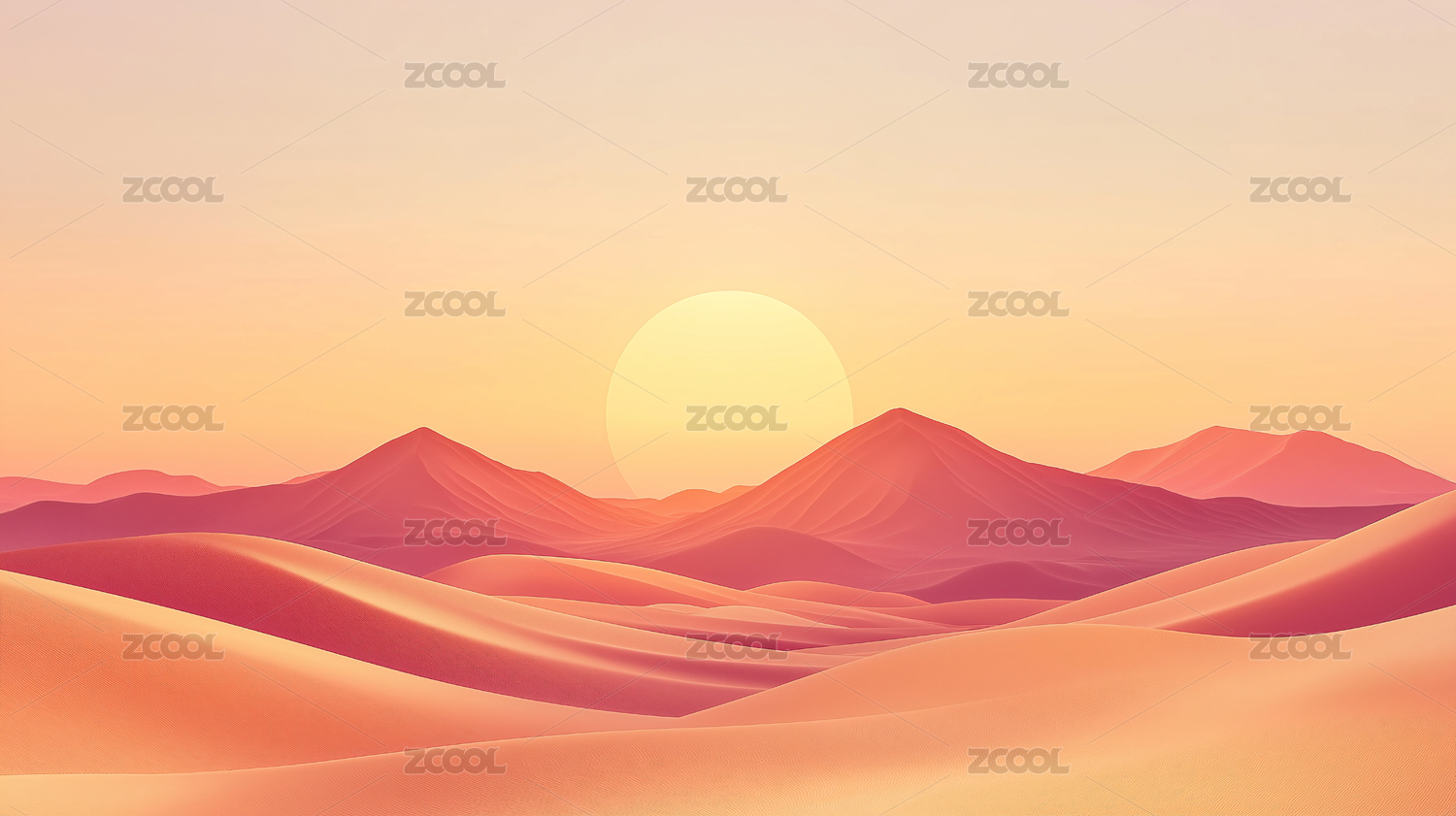沙漠荒漠起伏的沙堆卡通插画壁纸