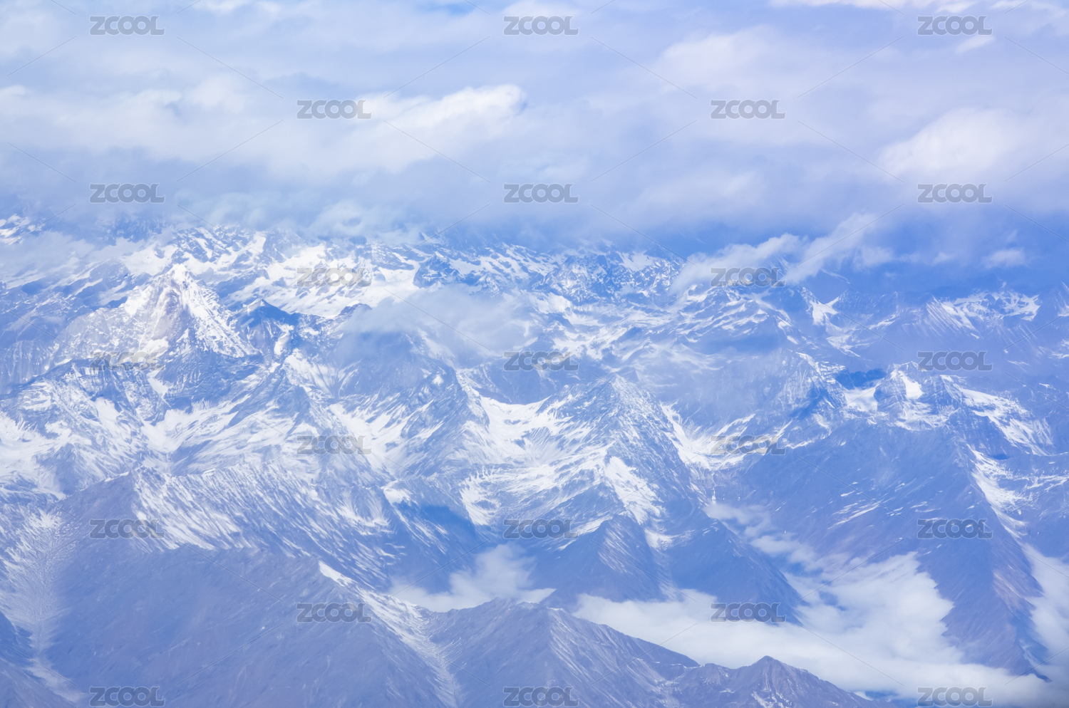 飞机上拍摄的雪山与云层