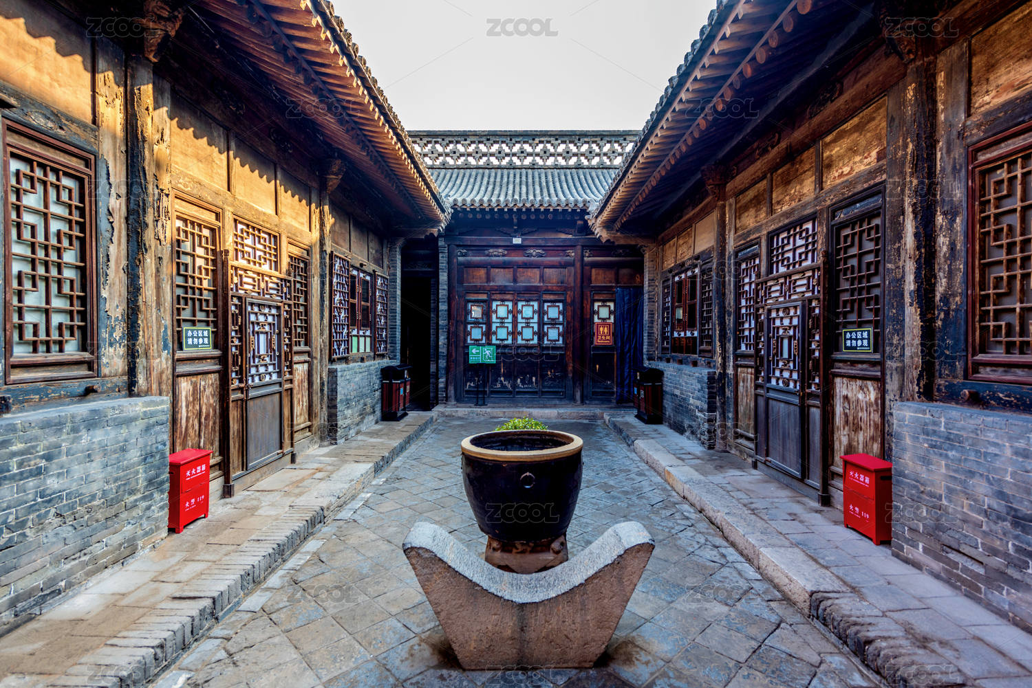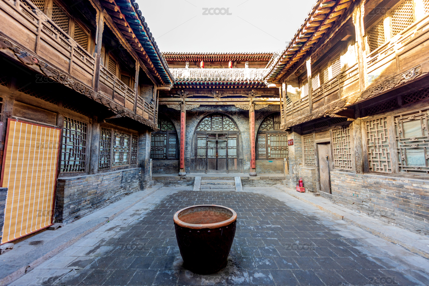 山西平遥古城内日升昌票号内的四合院古民居建筑