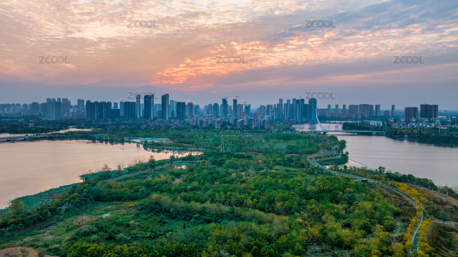 成都白鹭湾湿地公园和城市绿道秋季航拍