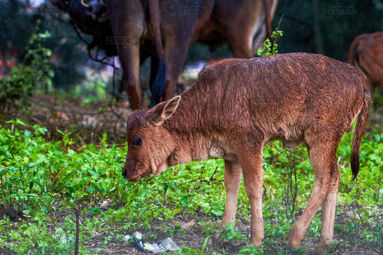 农场里可爱的水豚与梅花鹿,正在啃食牧草