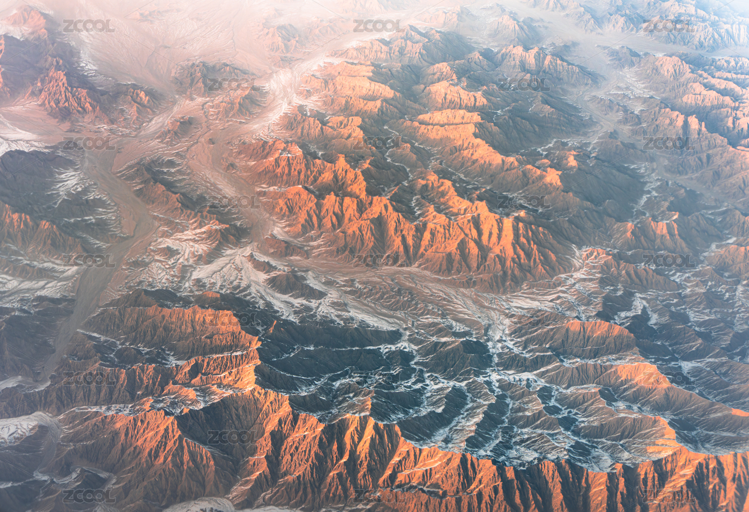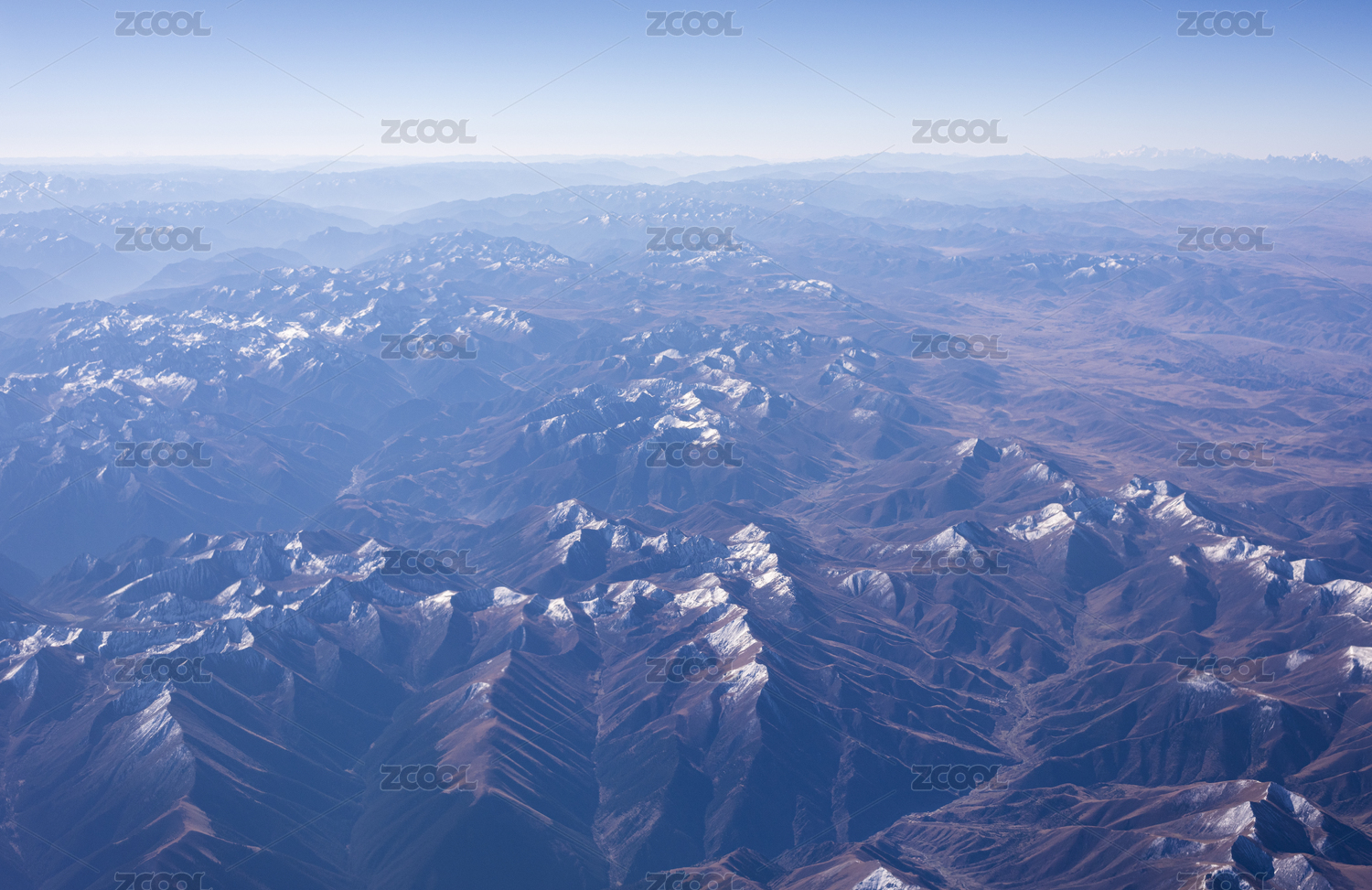 飞机窗外青藏高原连绵群山雪山雪景风光
