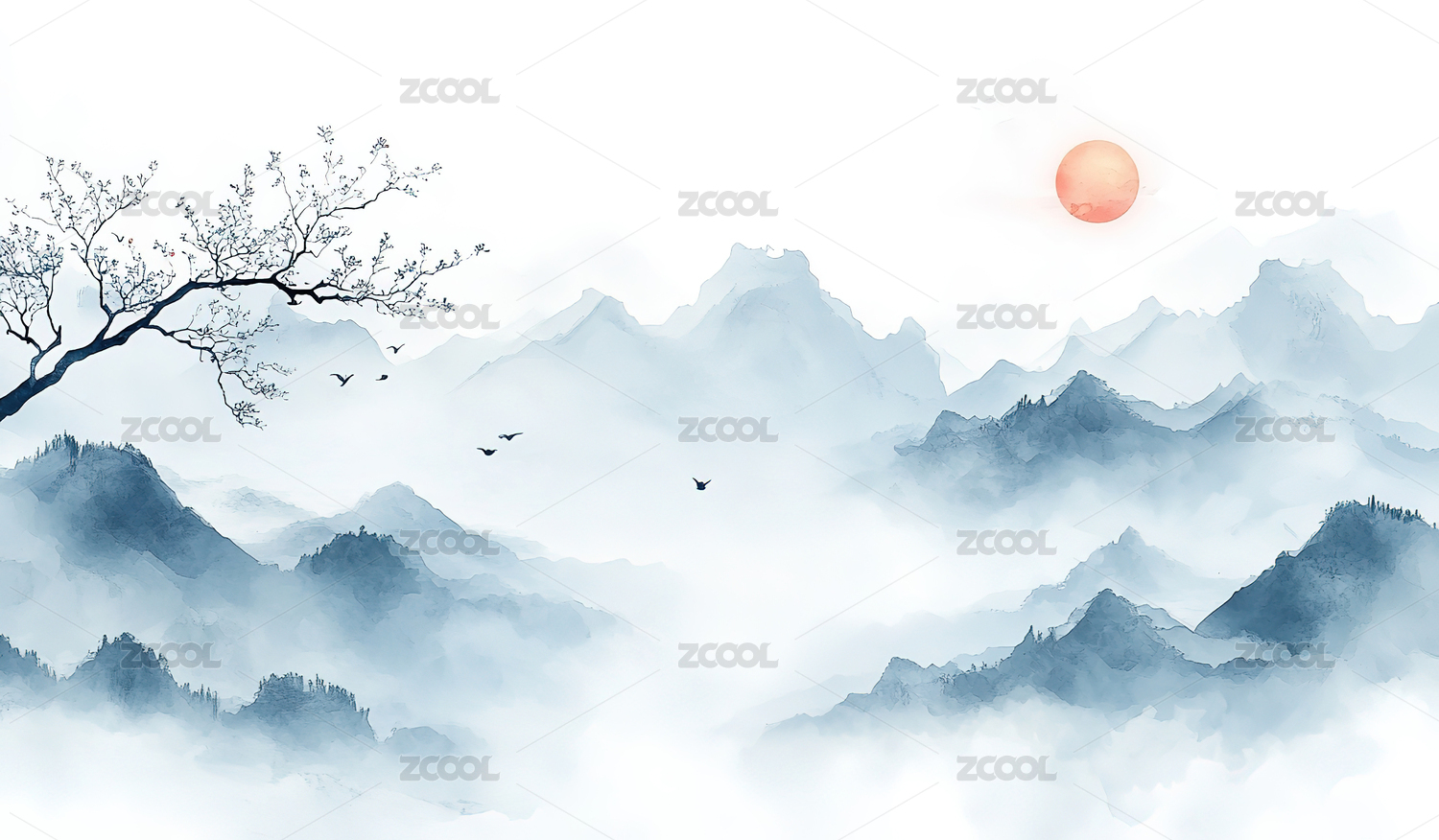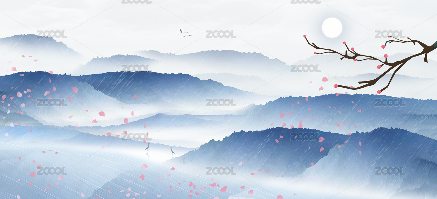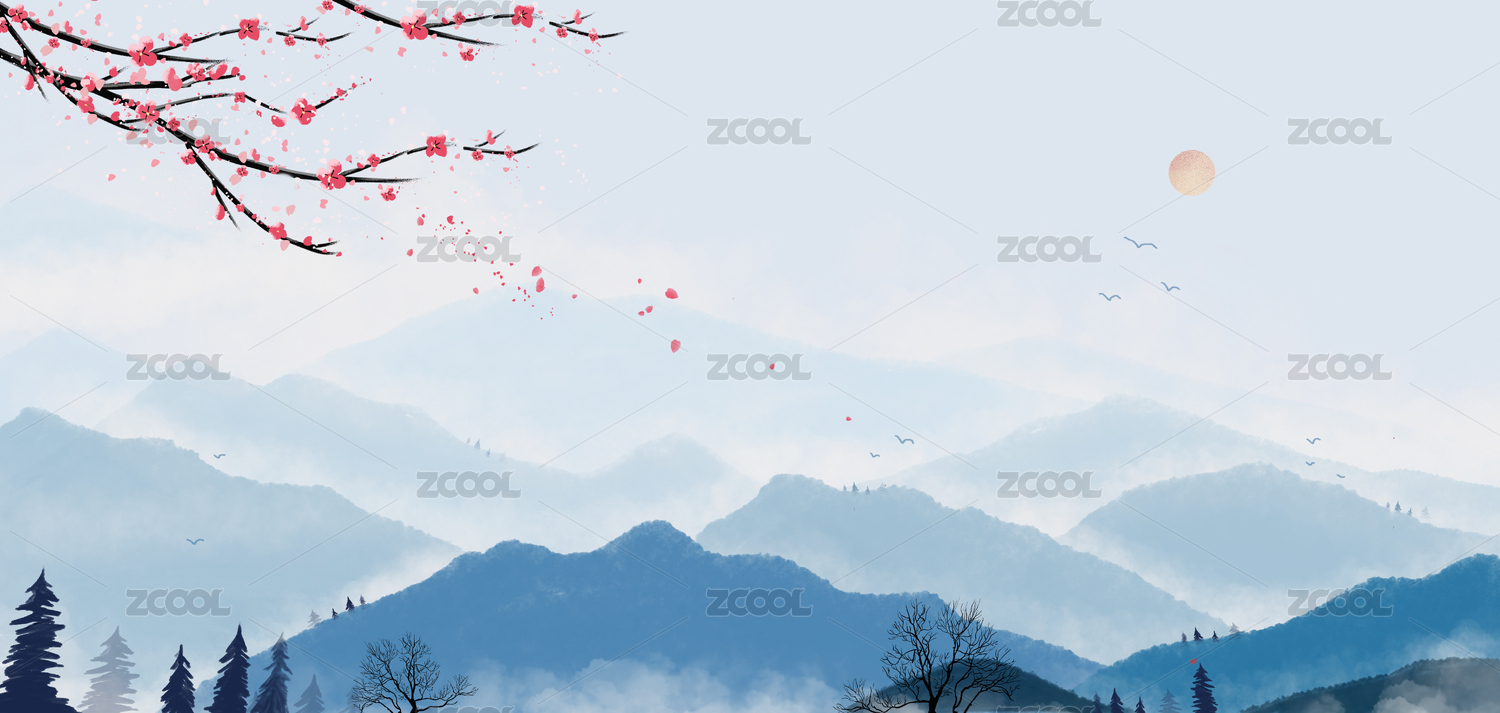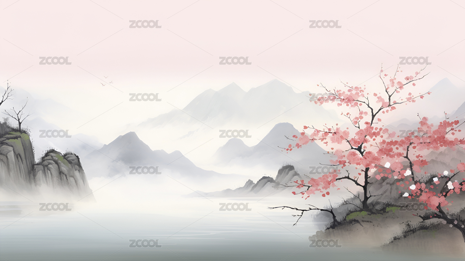 梅花国潮风敦煌壁画中国风诗意江风景插画