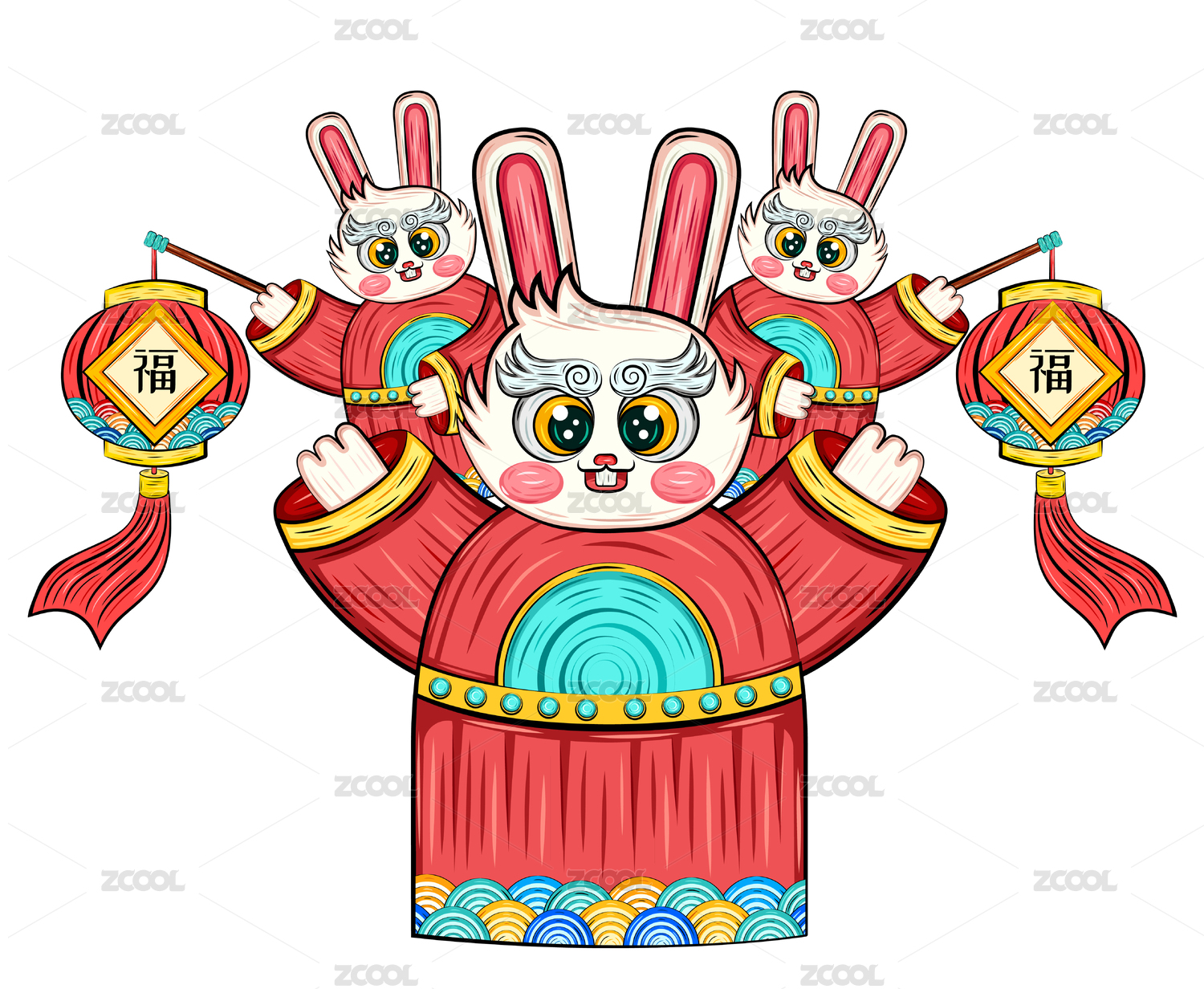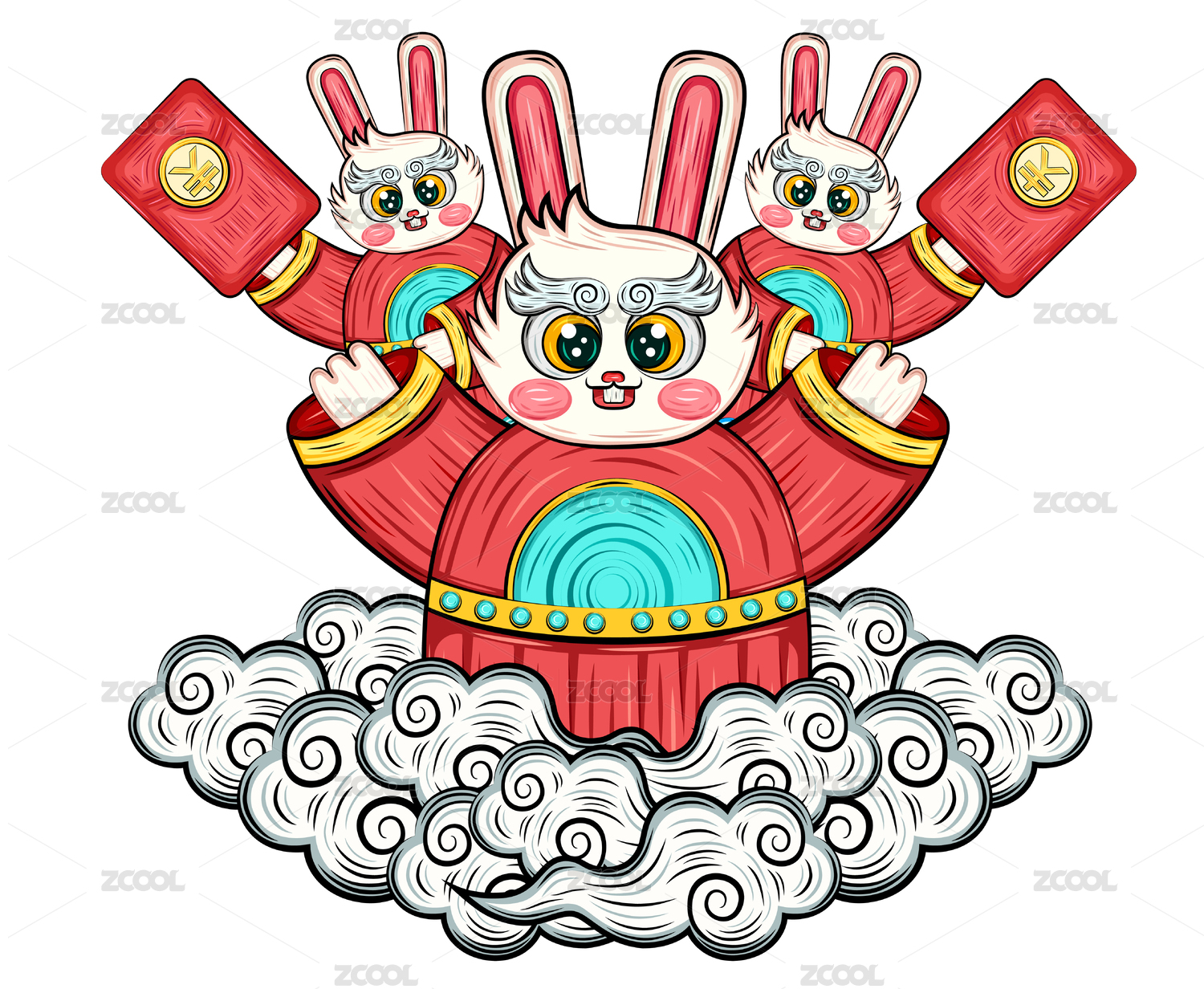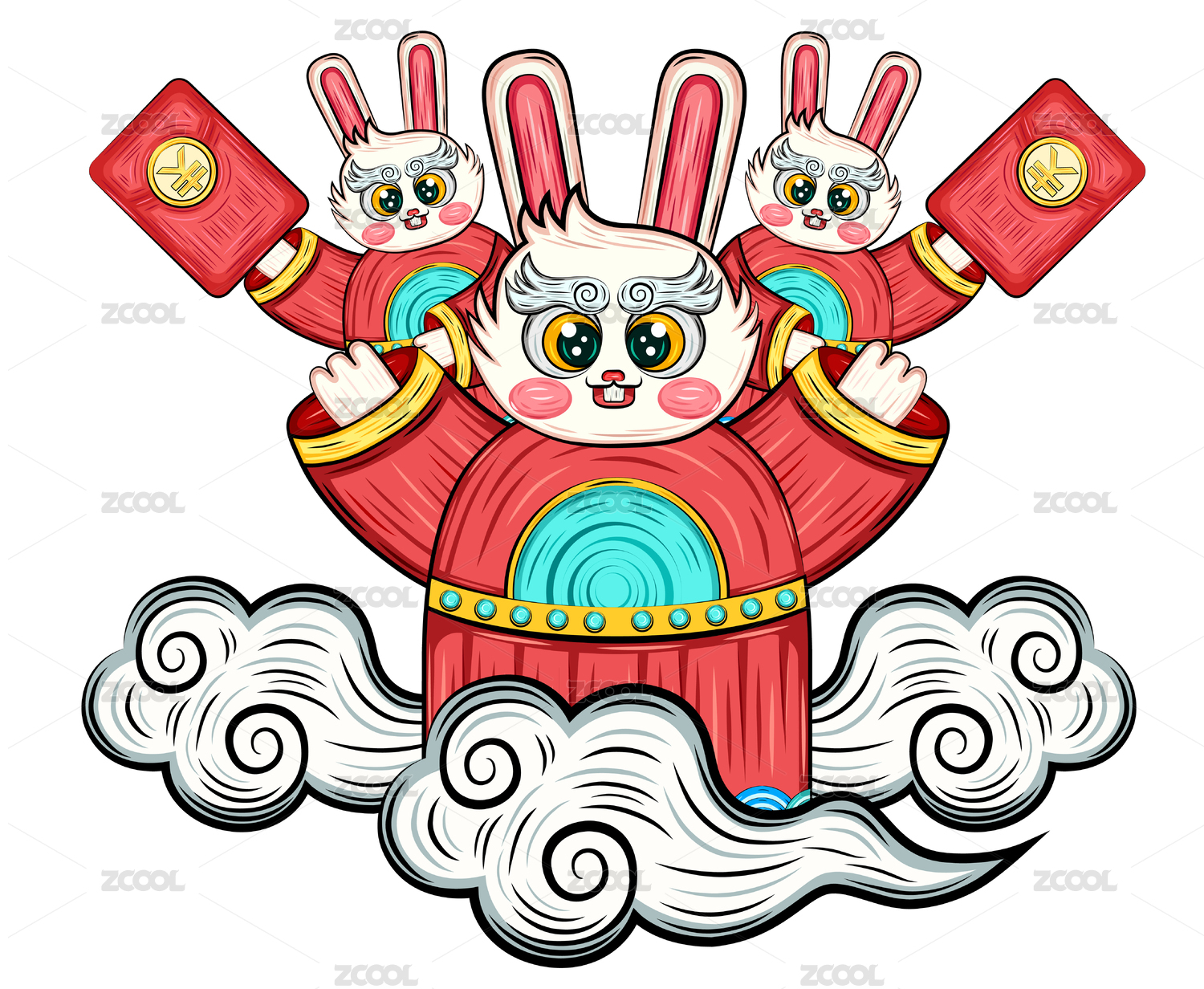 兔年,2023,兔,玉兔,兔子,财神,白兔,卡通,形象,吉祥物