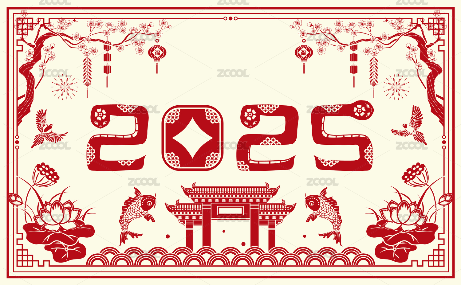 蛇年,春节,新年,元旦,铜钱,国潮,剪纸,2025,灯笼,桃花