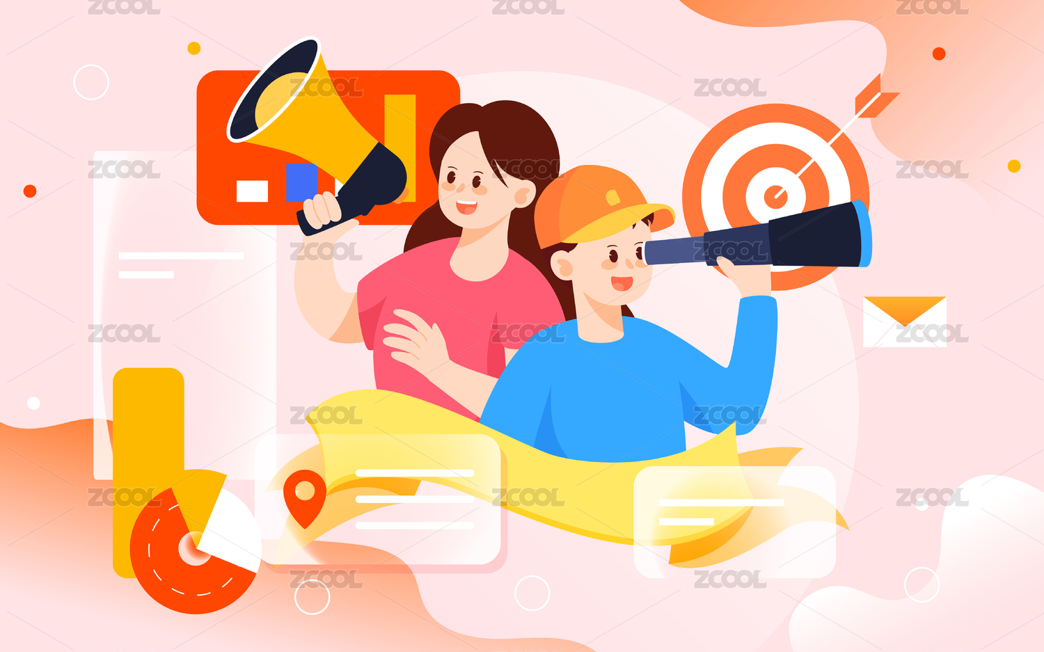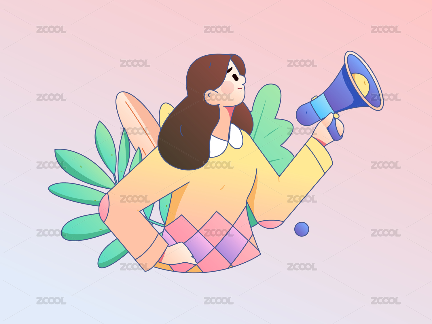 人物拿着喇叭大声喊叫海报促销营销活动插画