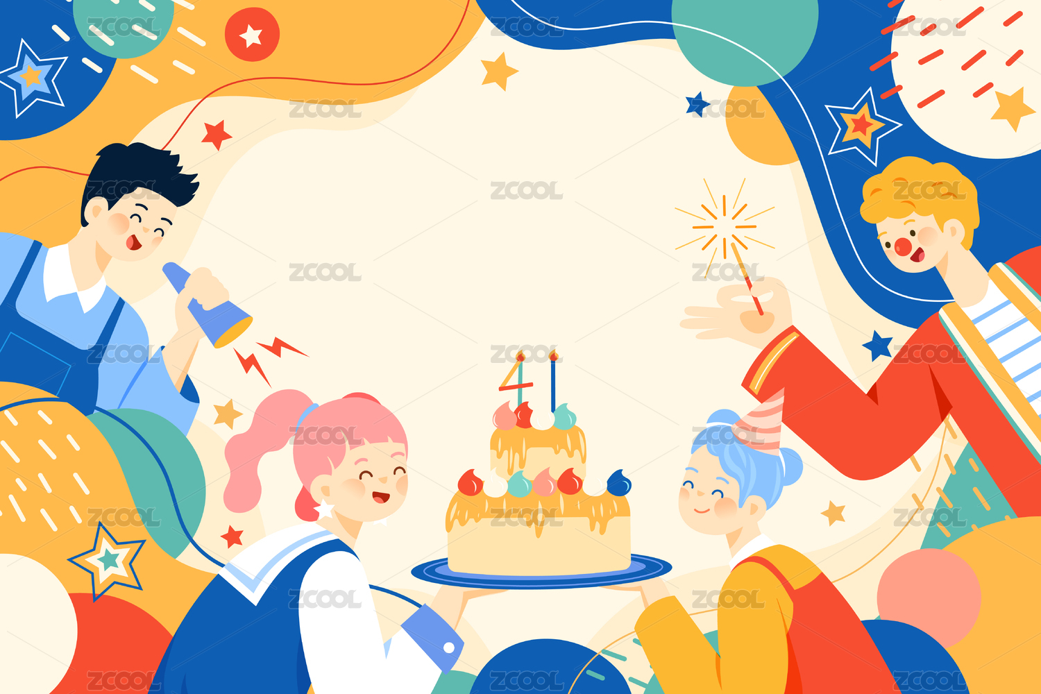 小孩们的生日派对插画