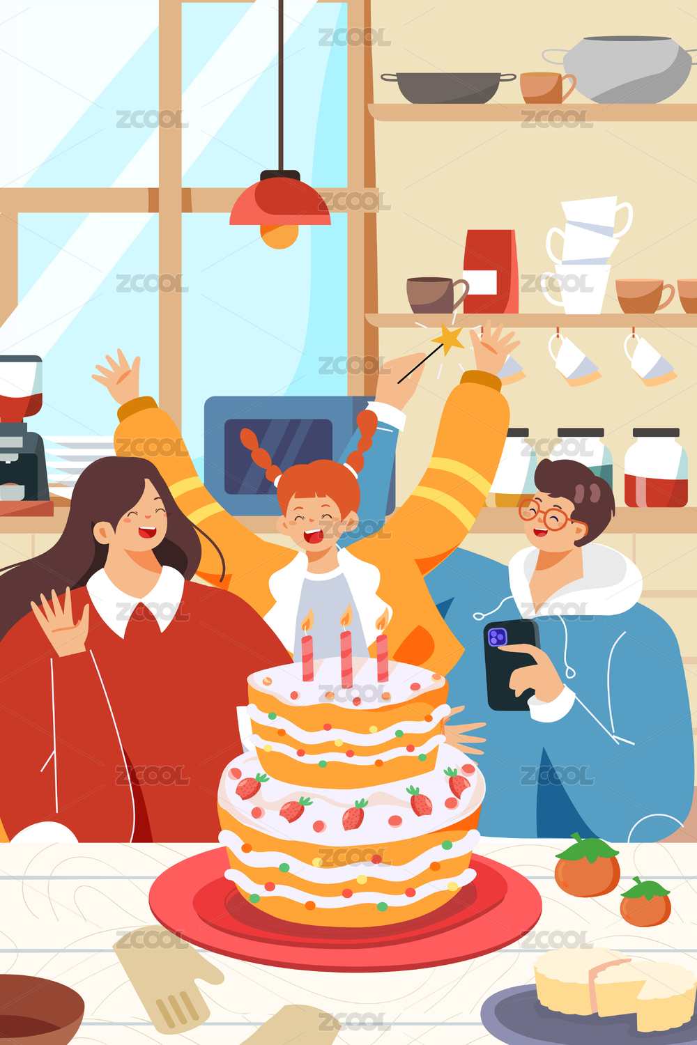 一家人庆祝生日插画