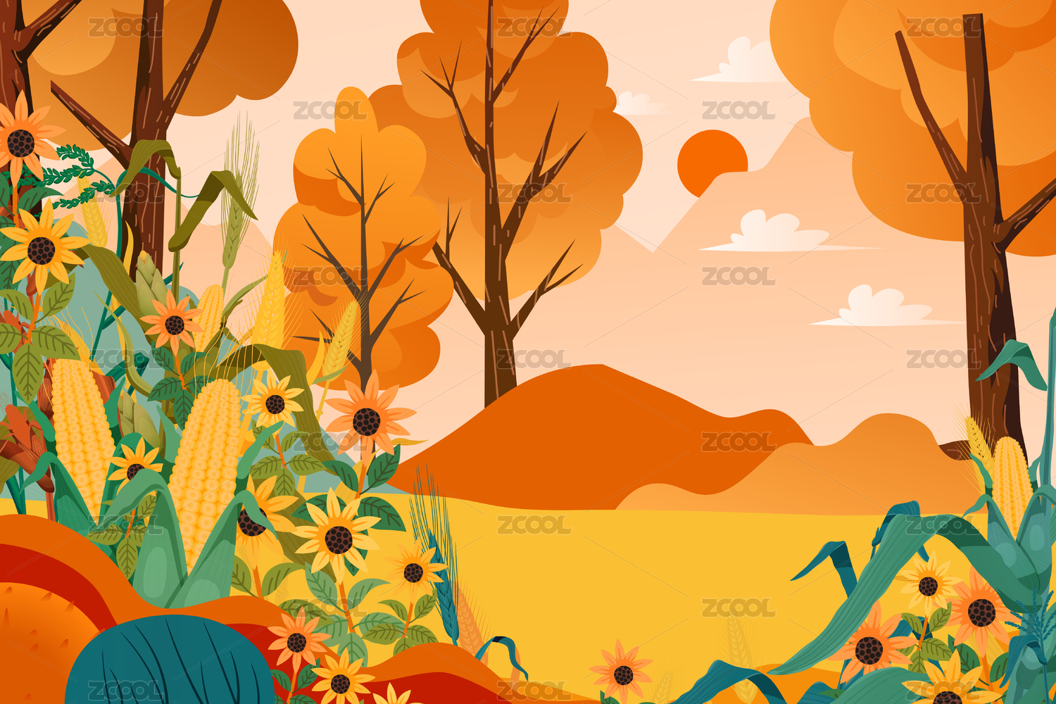 向日葵风景矢量插画