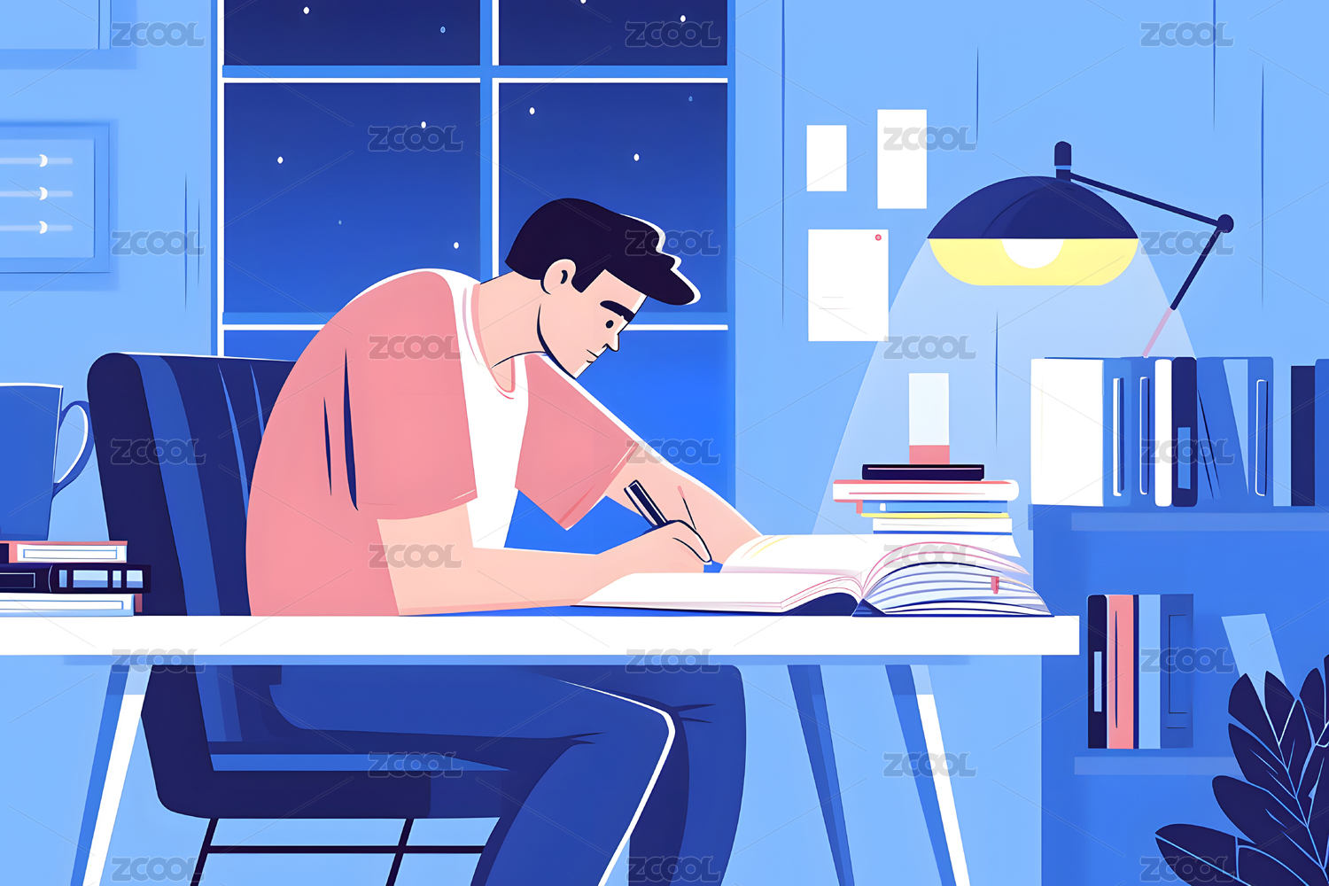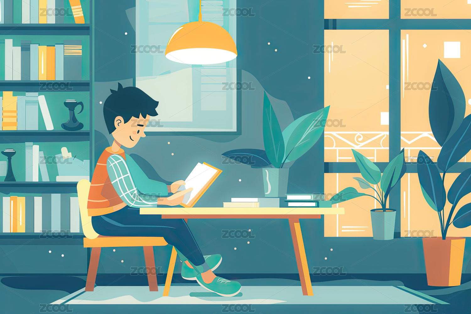人物学习看书插画场景