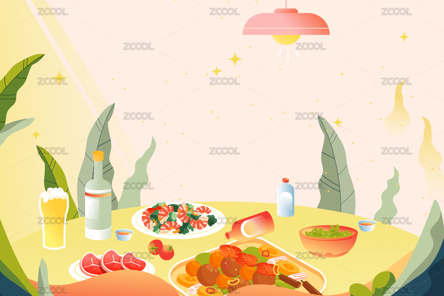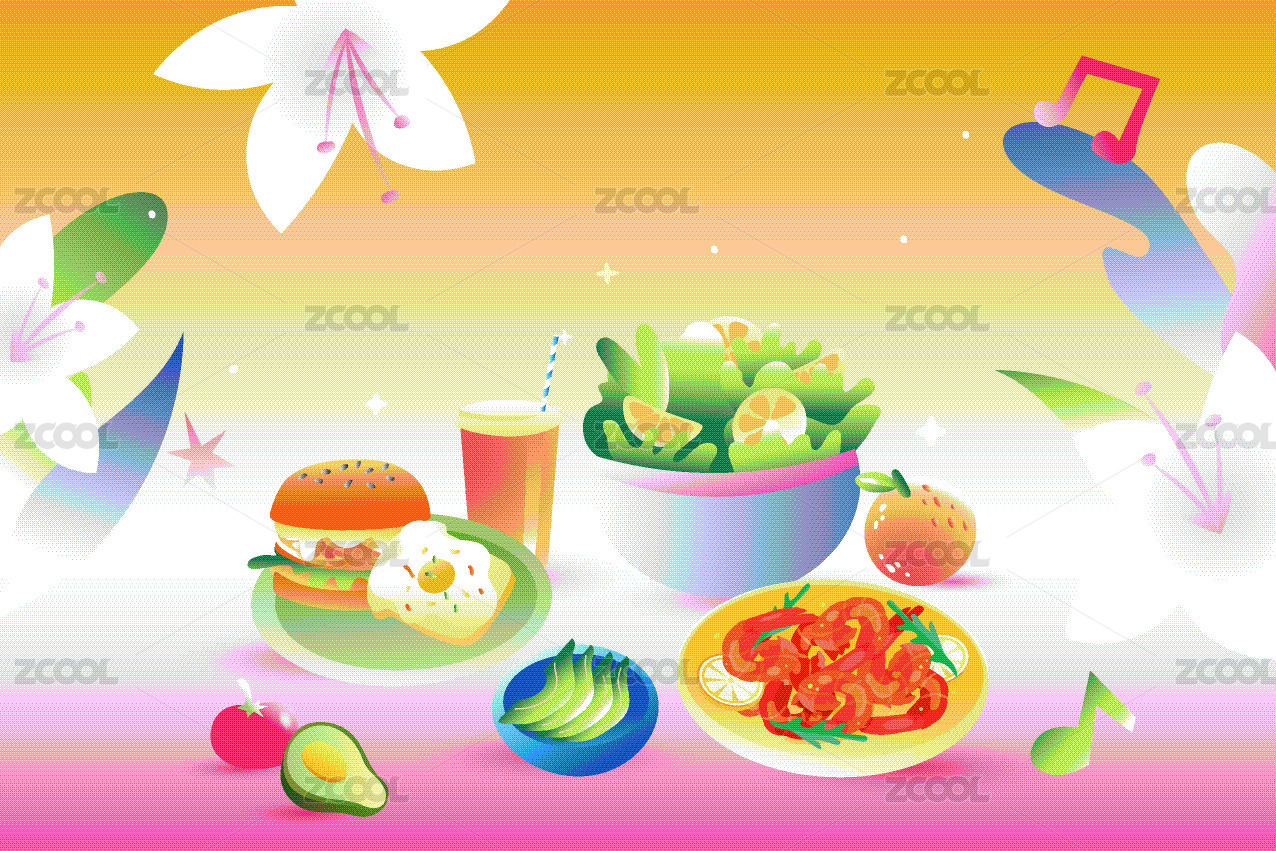 健康早餐美食沙拉俯视图健身餐鸡蛋面包插画