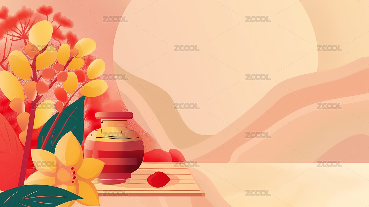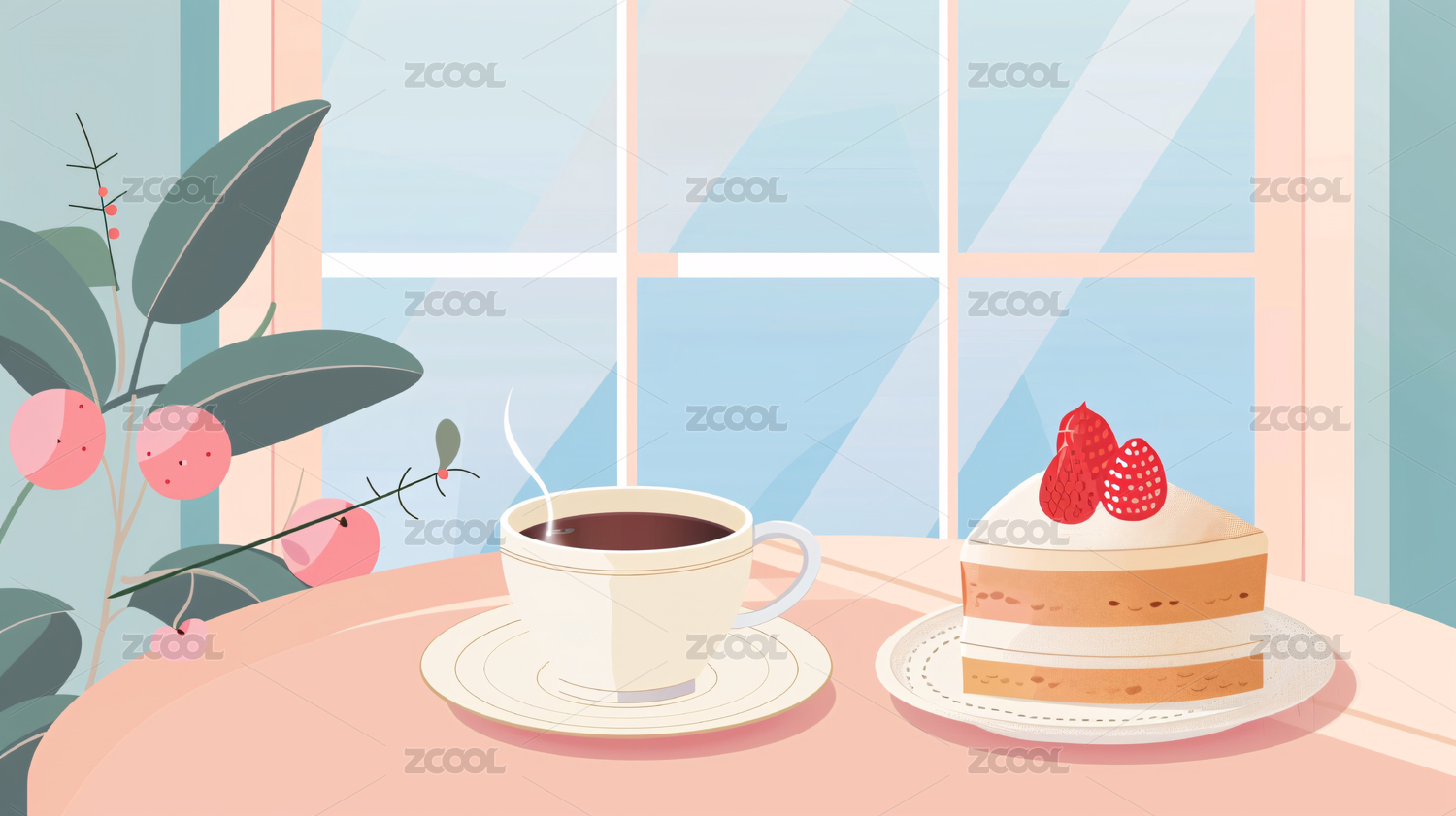 牛奶咖啡蛋糕下午茶简约扁平风时尚插画