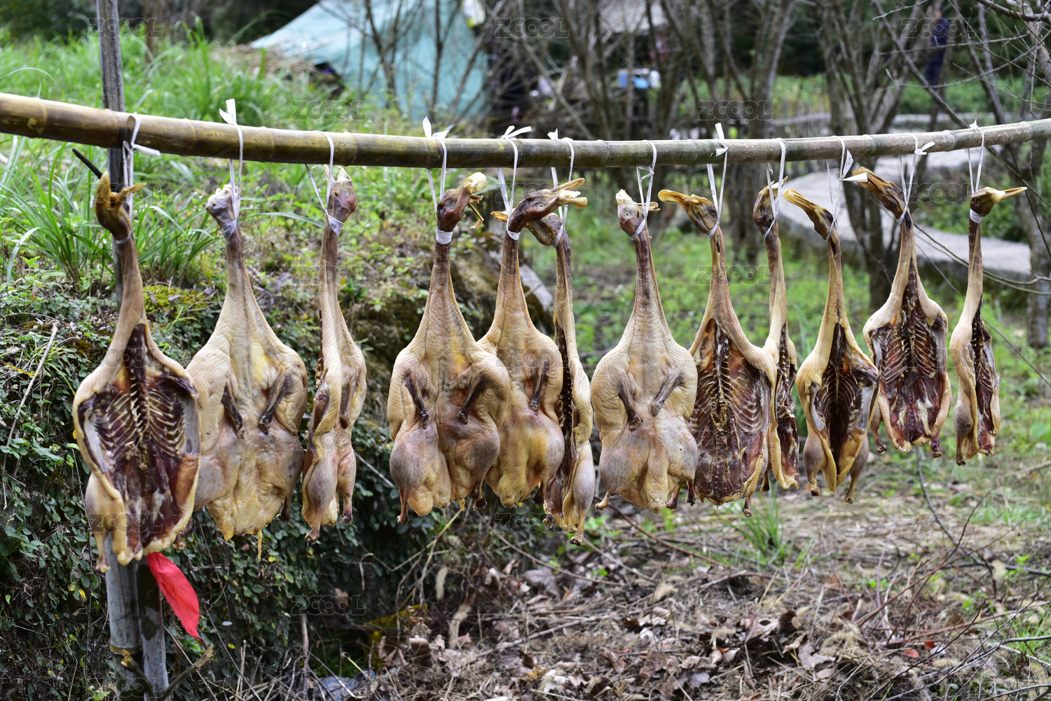 安徽省黄山市黟县塔川村秋天凉晒的腊鸭子