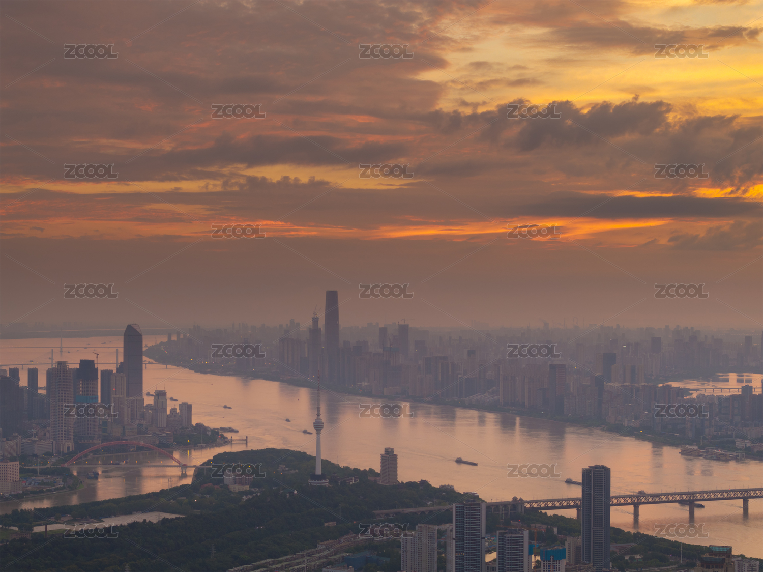 长沙城市天际线日出朝霞