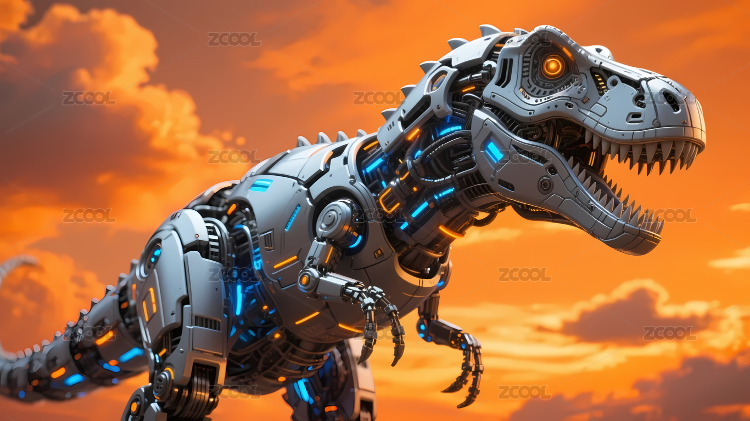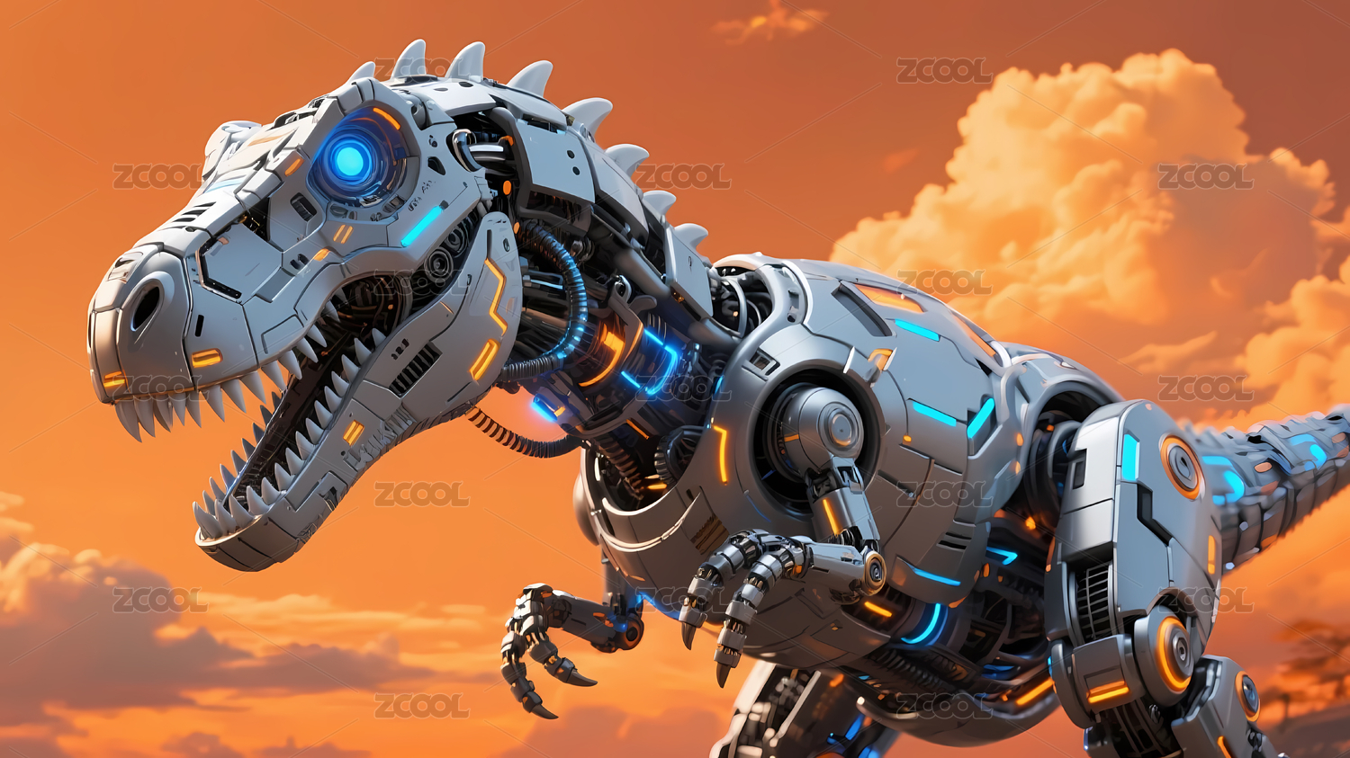 恐龙,机器人,机械,霸王龙,金属,未来,科幻,废墟,荒野,雾