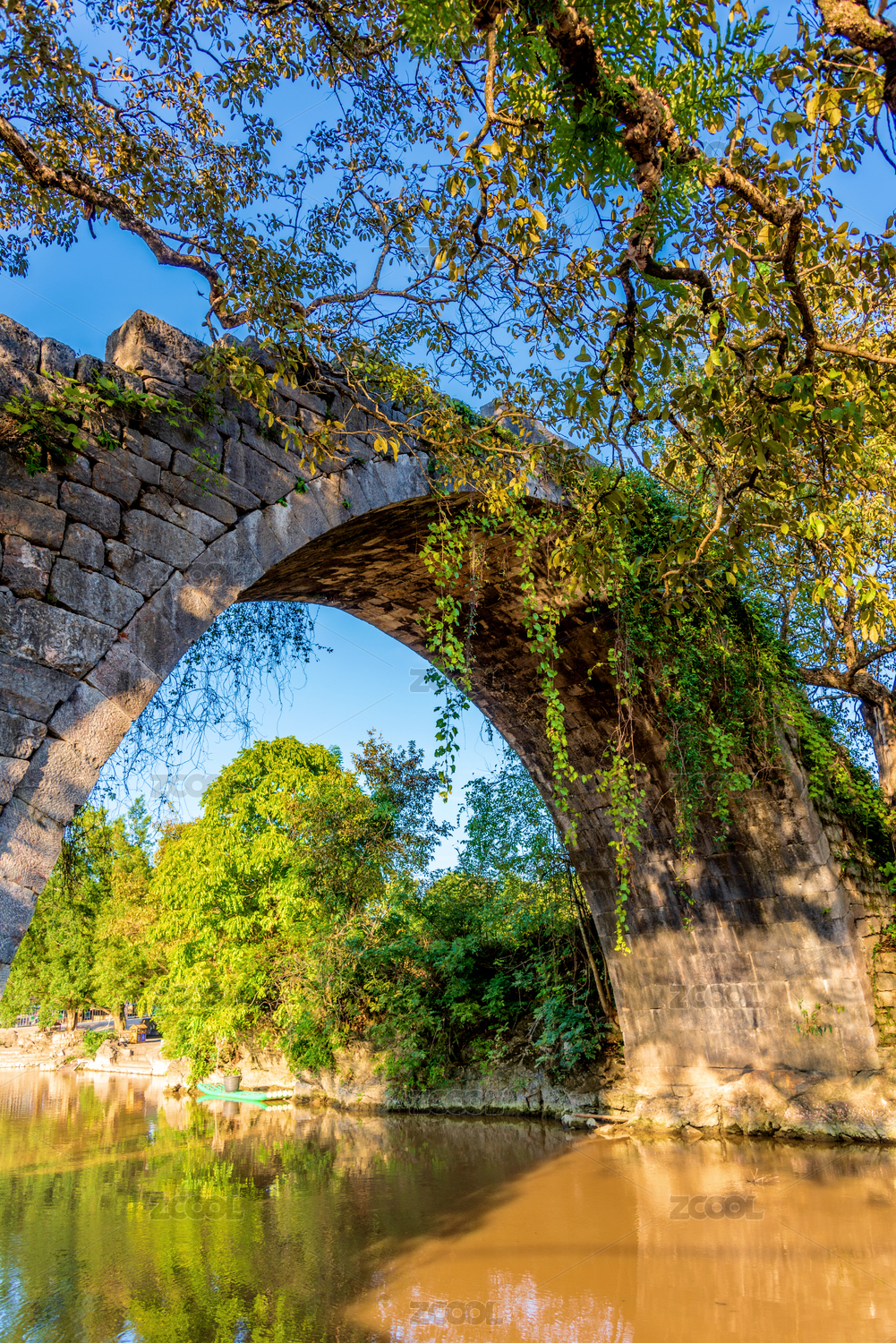 树荫下的古桥