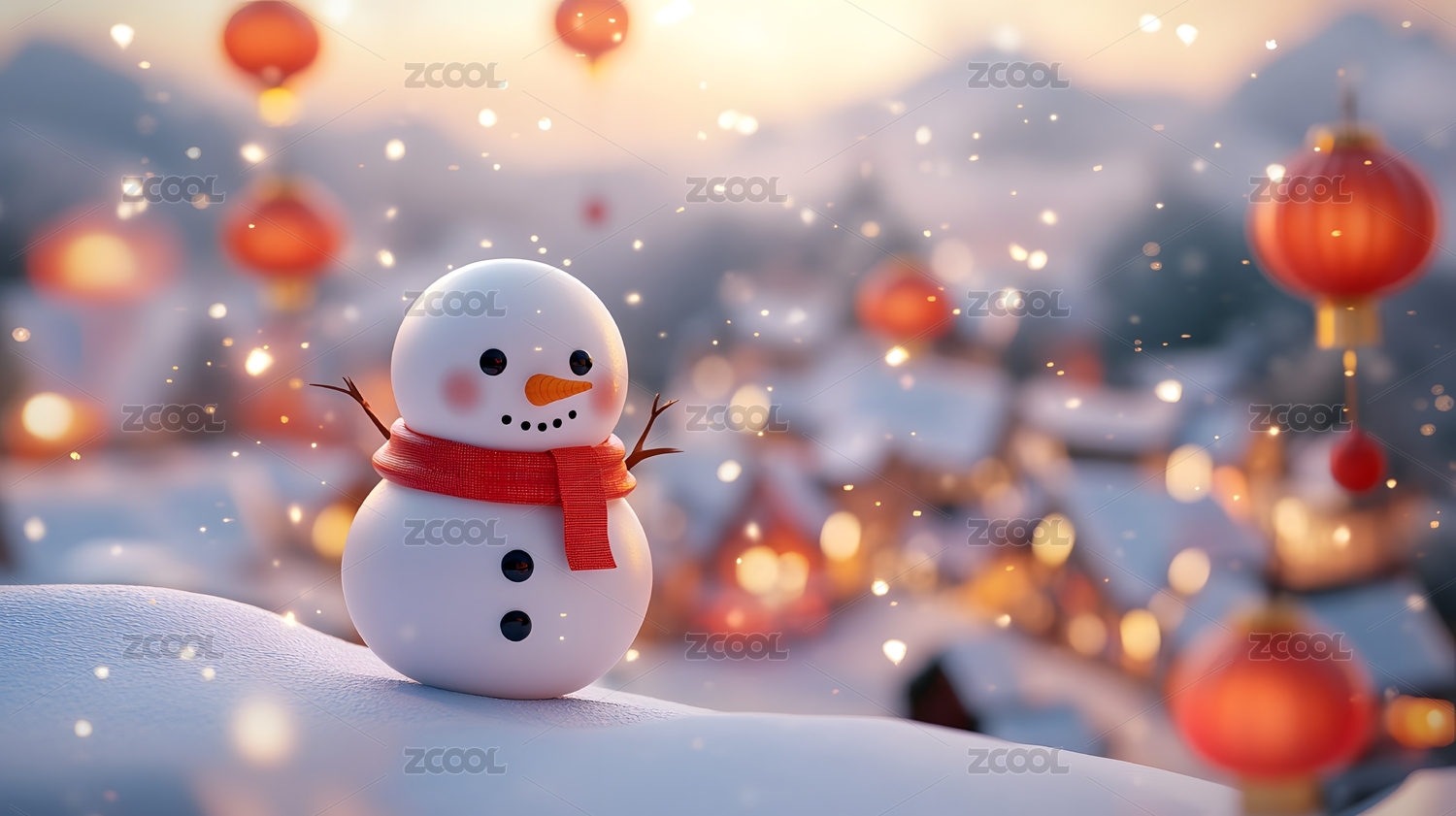 清新可爱圣诞老人的雪人3D卡通立体插画