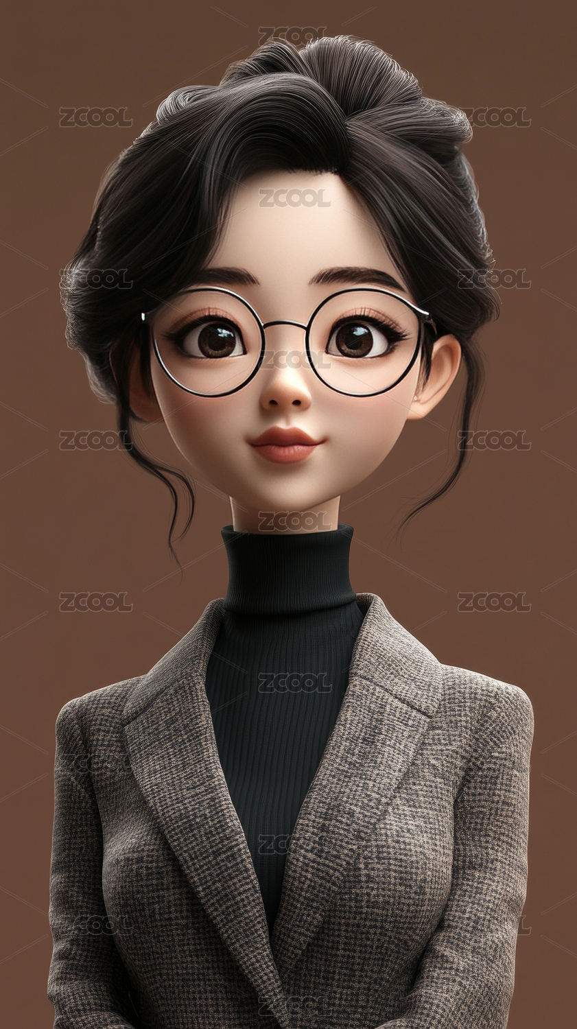 商务,眼镜,肖像,人物,插画,3D,卡通,形象,微笑,女孩