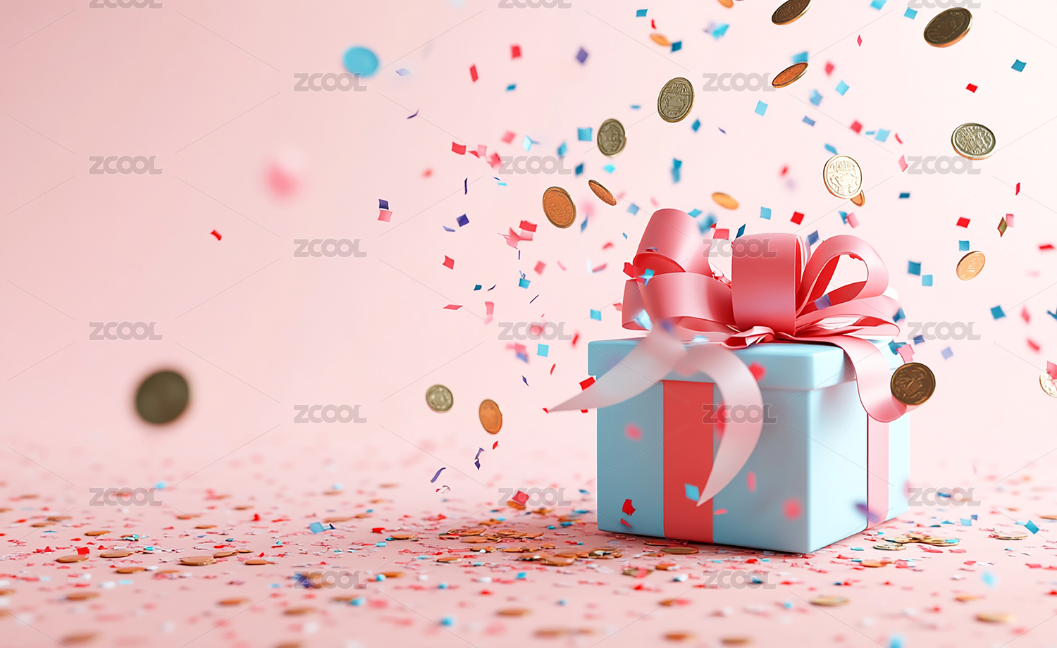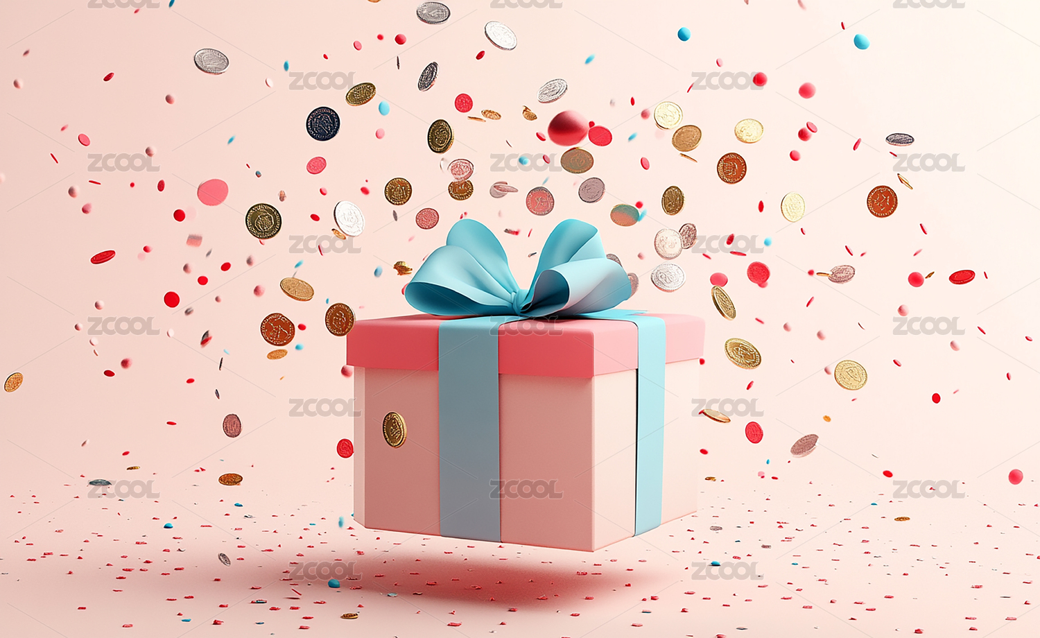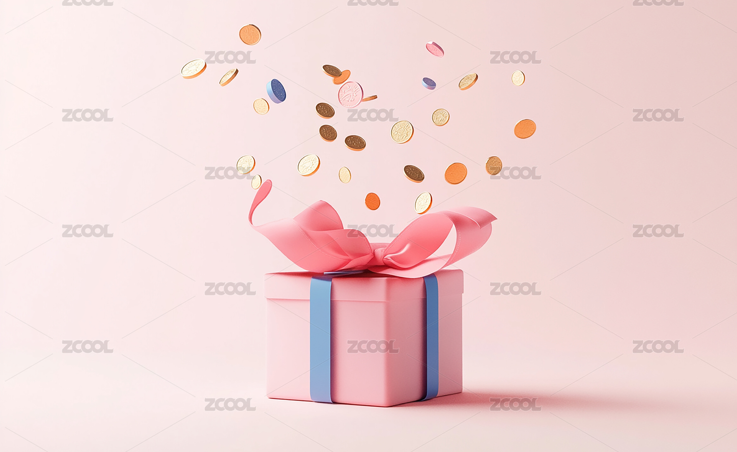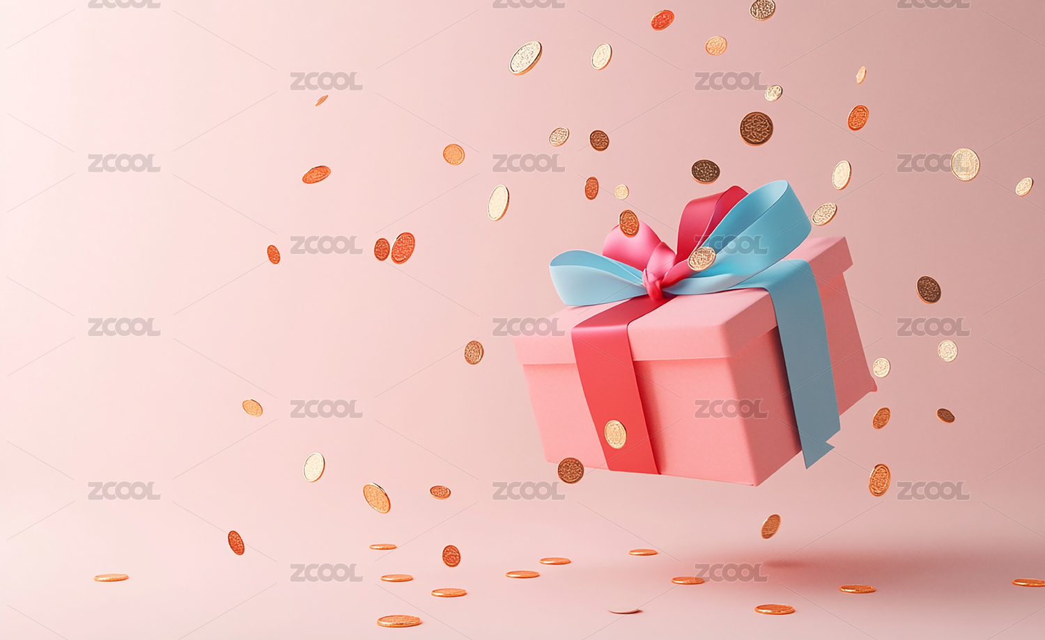 DXCZ202401,电商,礼物,背景,金币,购物,海报,纯色,金色,粉色