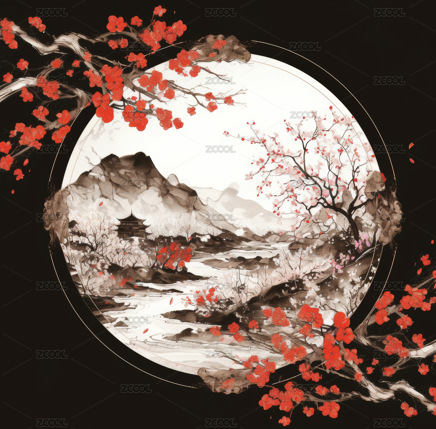 中国风抽象艺术中国传统梅花山水诗意水墨画