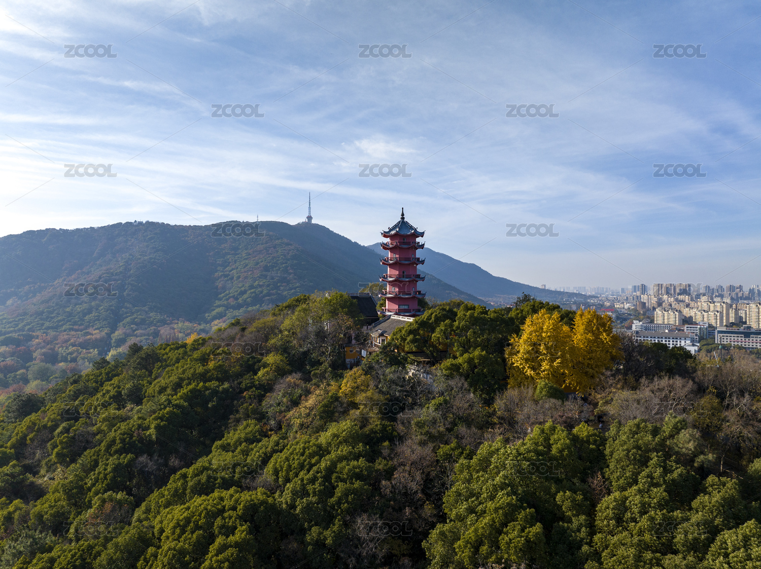 航拍江苏省南京市钟山风景区灵谷寺灵谷塔