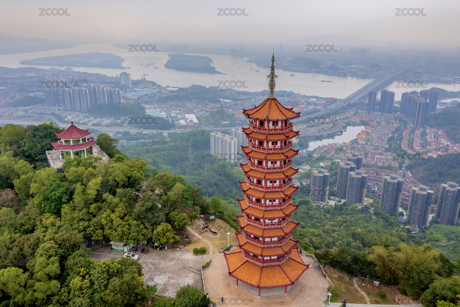广东省中山市石岐区中山公园烟墩花塔航拍