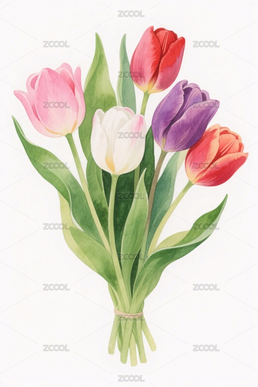 水彩风郁金香花束