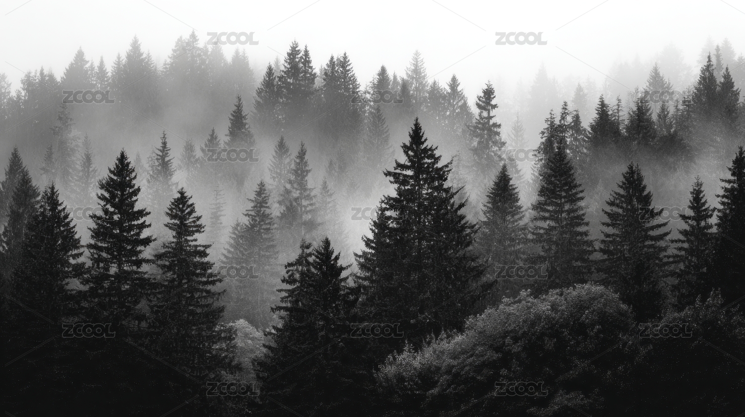 黑白雾气森林