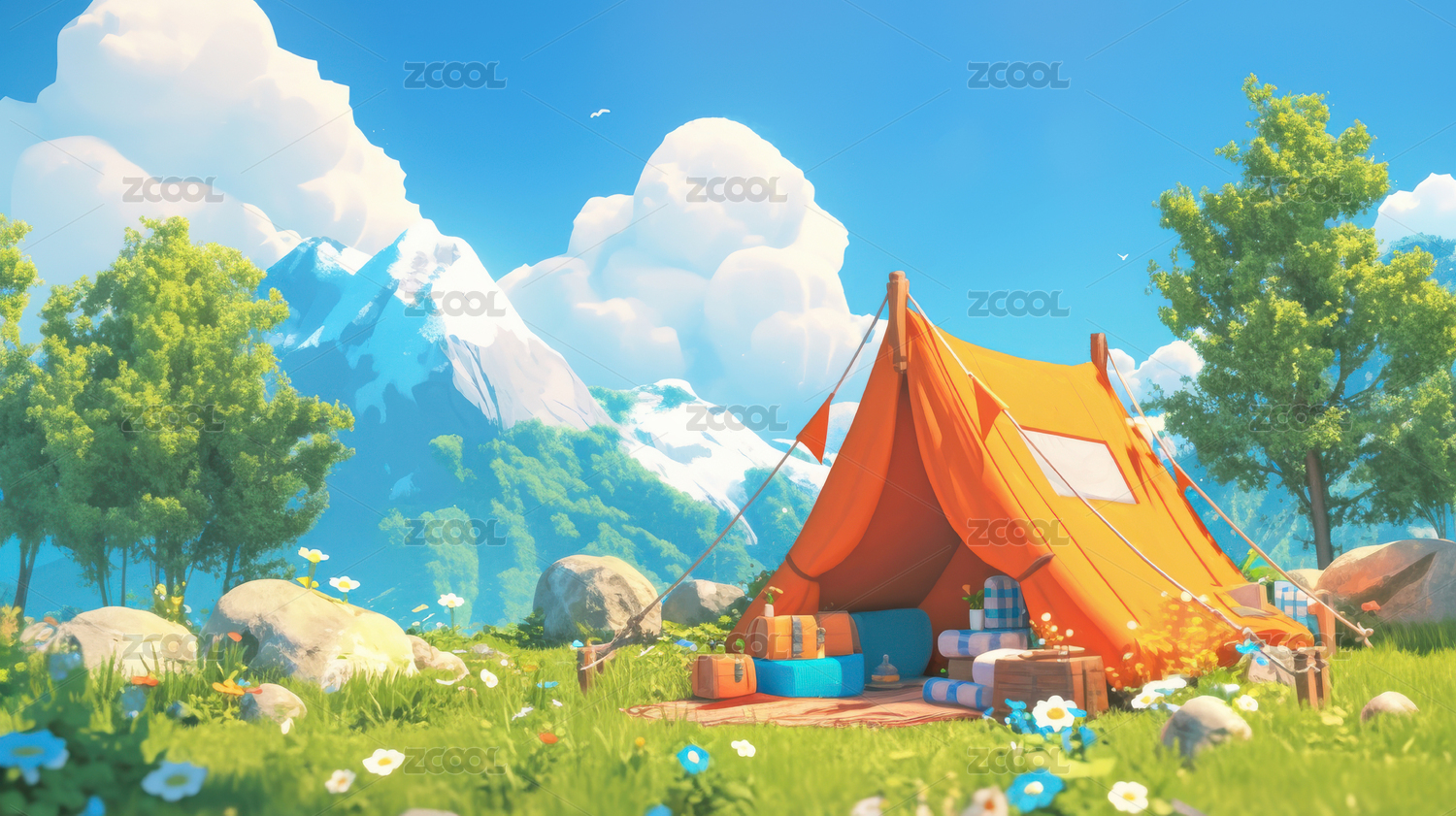 背景图,背景,插图,户外,露营,卡通,漫画,插画,秋天,扁平