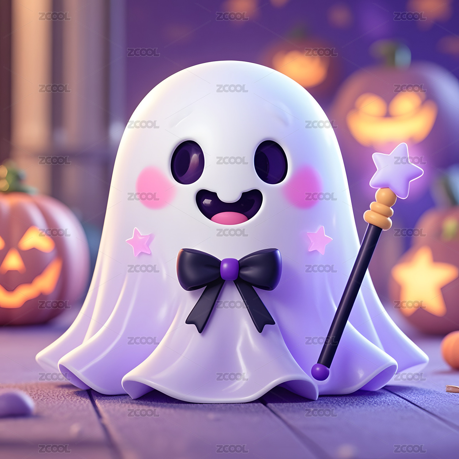 卡通南瓜人巫师帽蝙蝠彩色糖果童趣场景