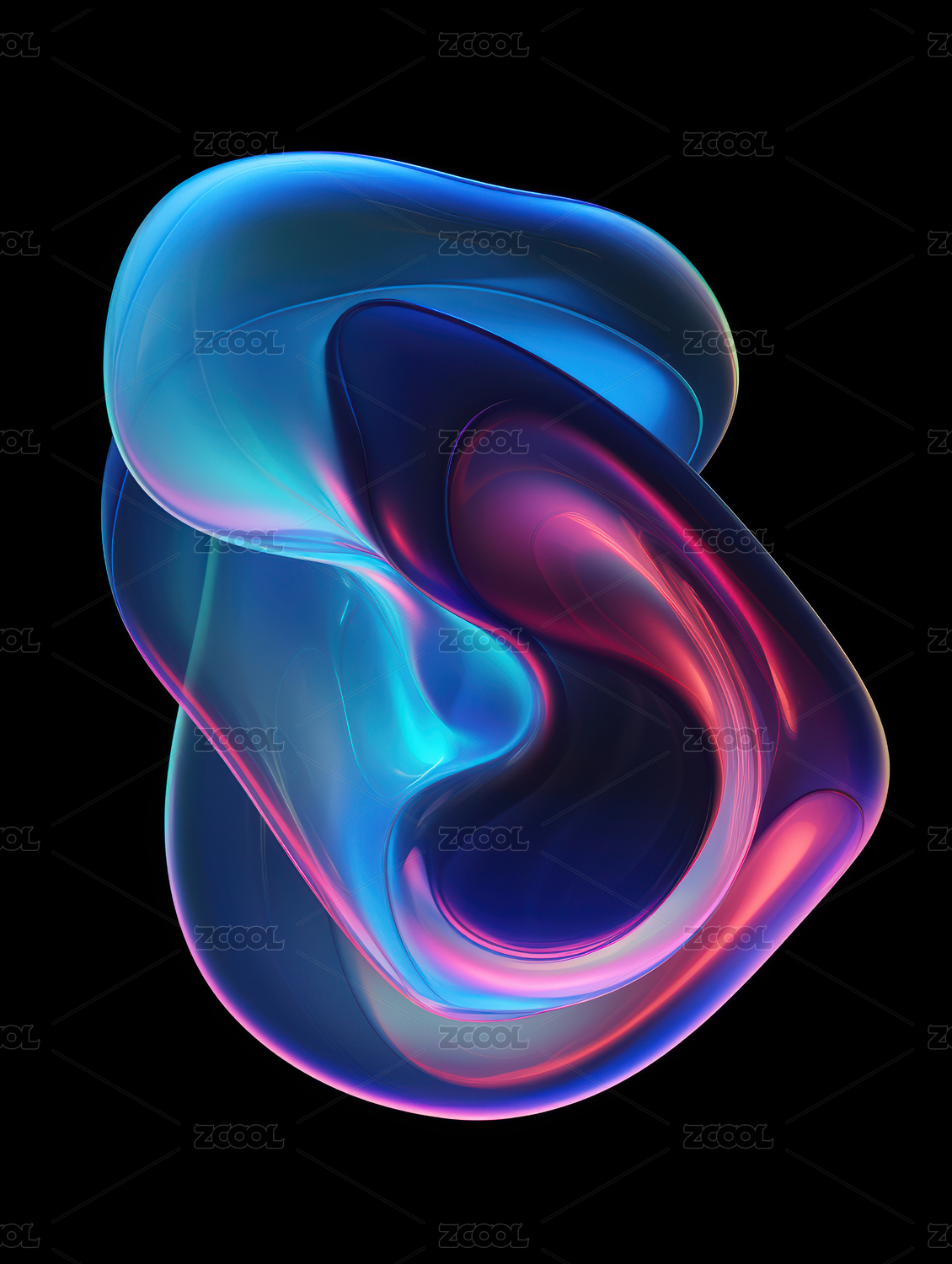 液体悬浮形状的抽象科技图形,蓝紫色调
