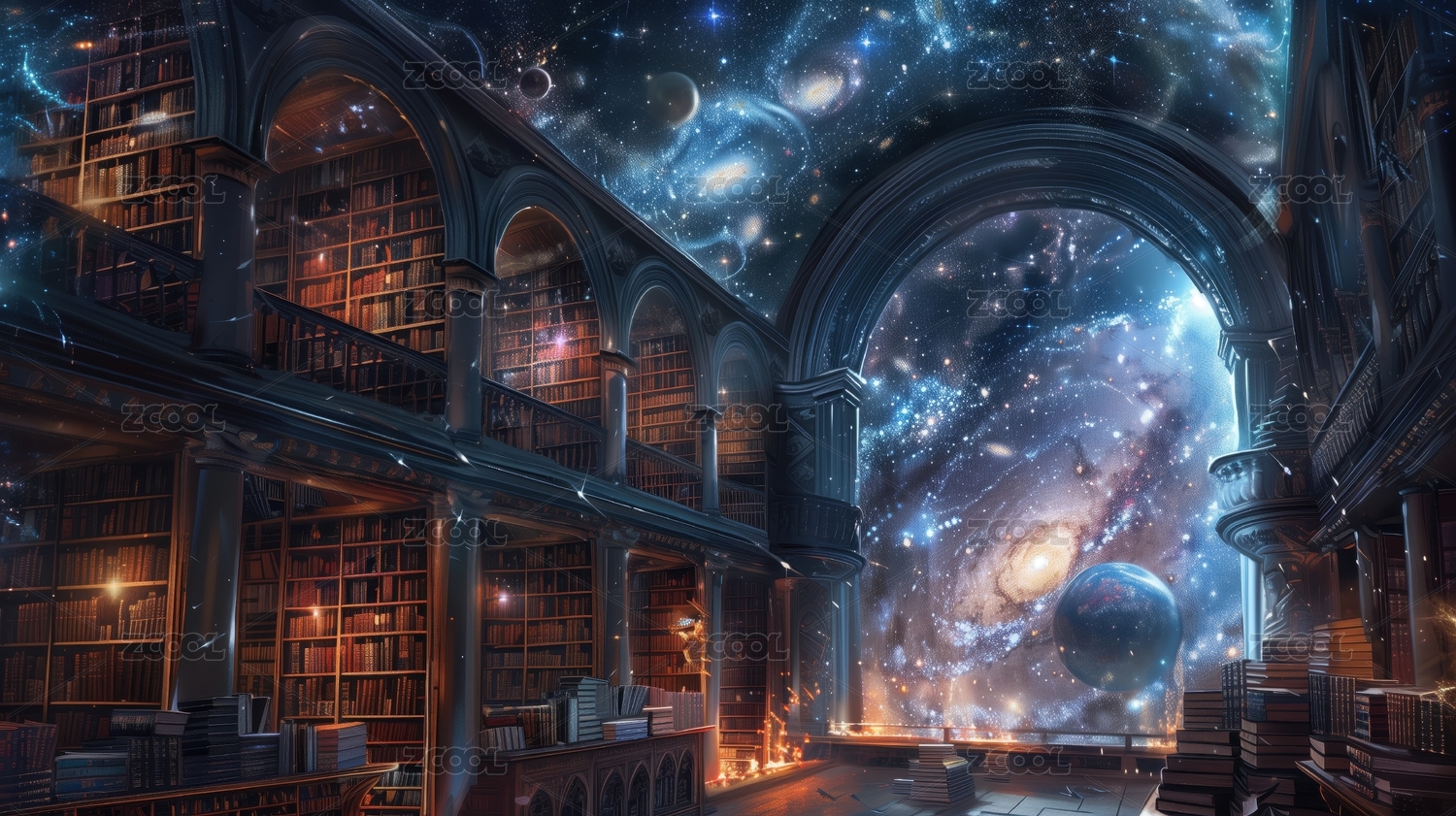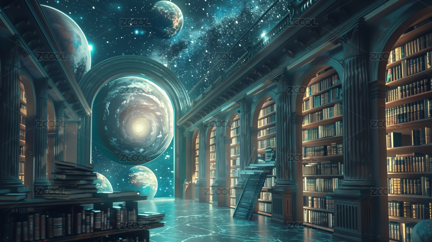 星际图书馆宇宙建筑梦幻AI数字艺术创意设