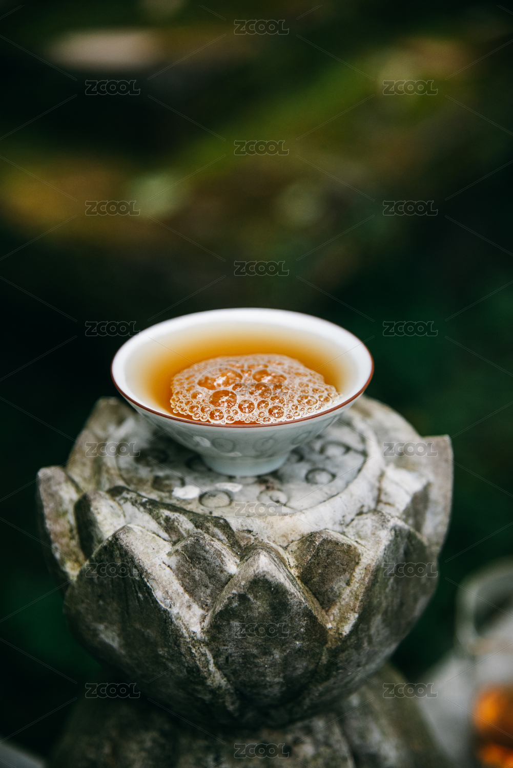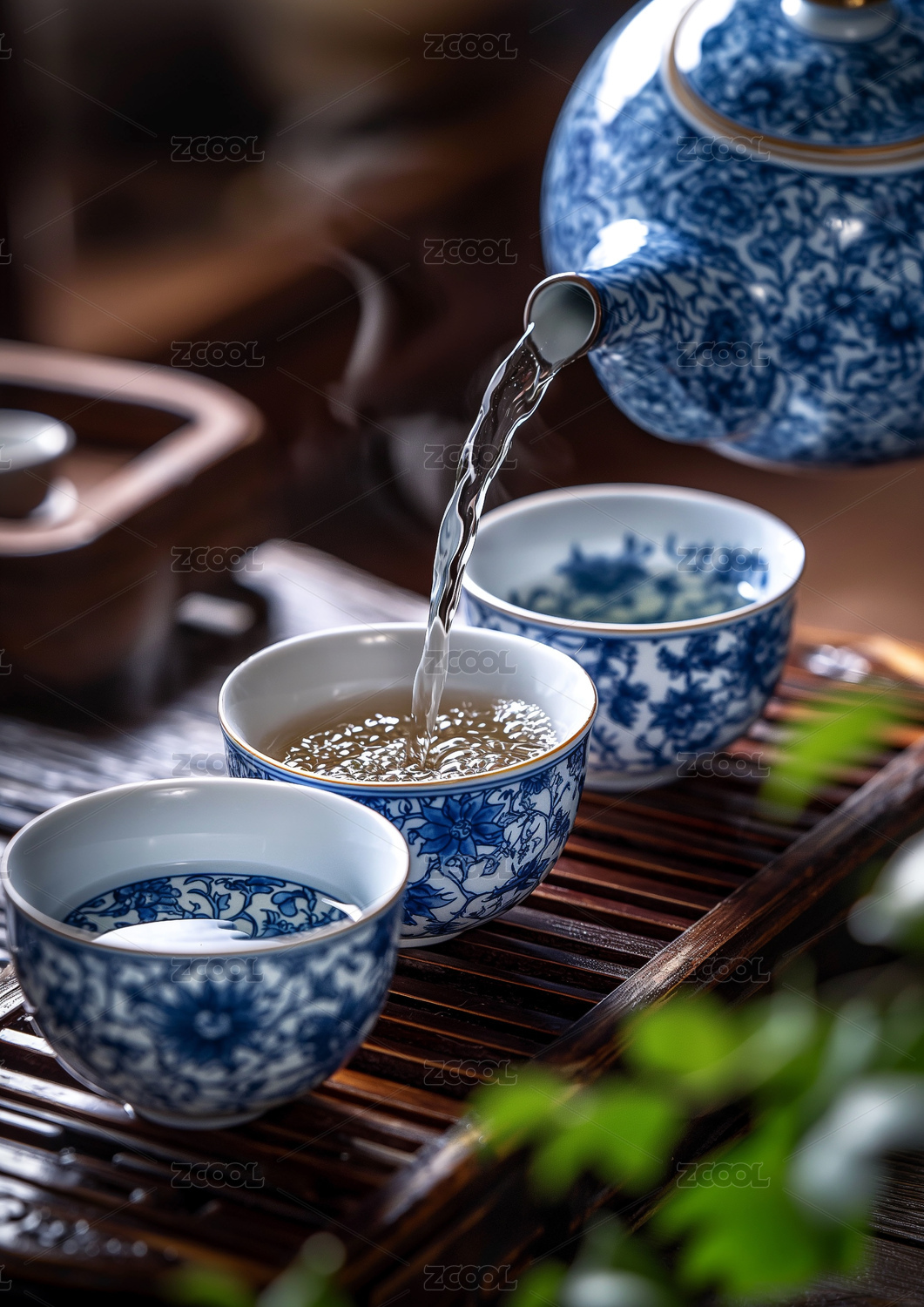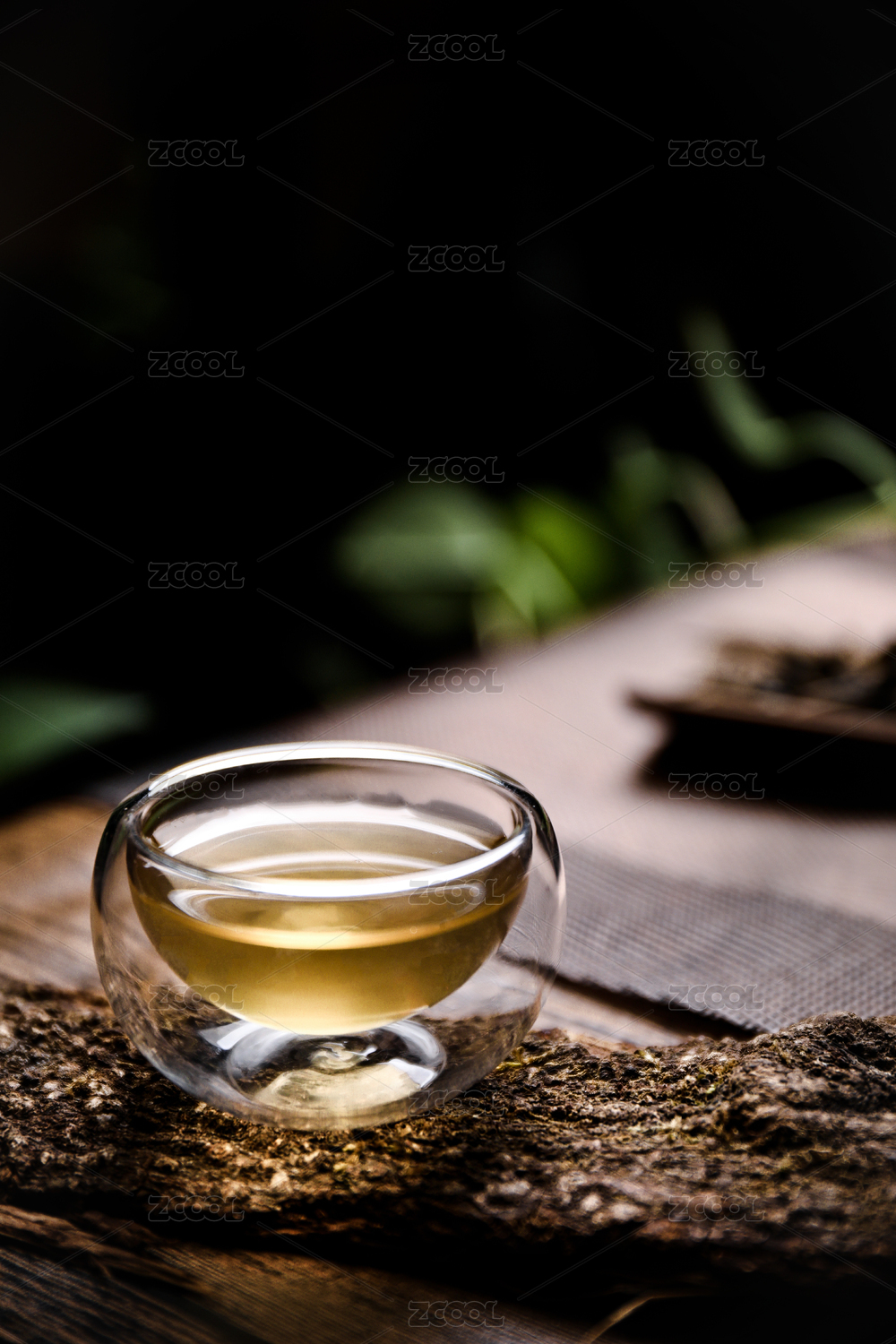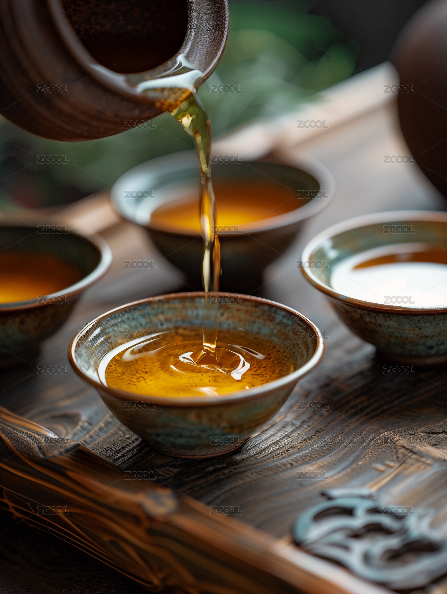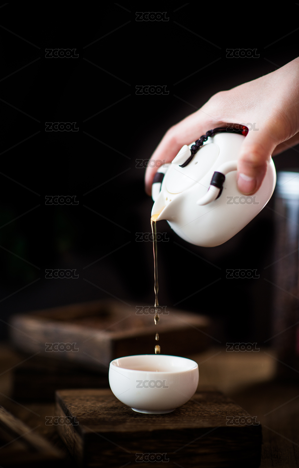 暗调中式背景里正在倒着的绿茶