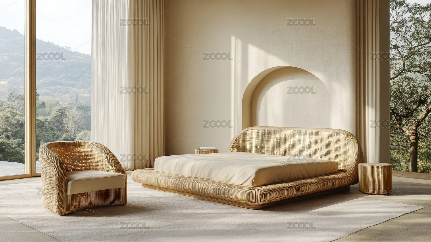 卧室,舒适,藤编,家居,家具,室内设计,温馨,休闲,米色,阳光