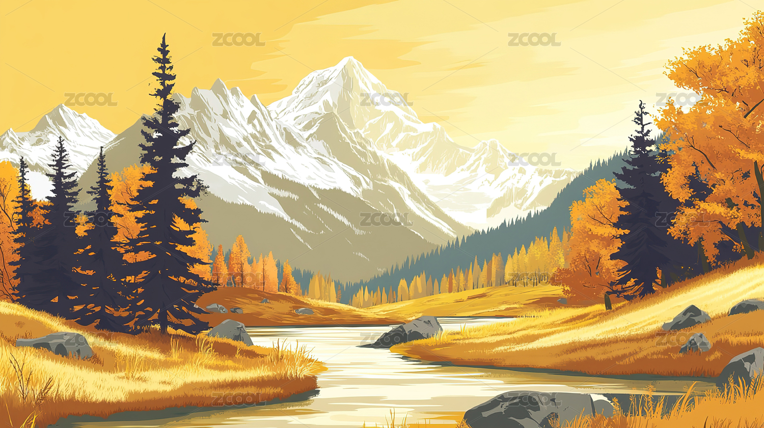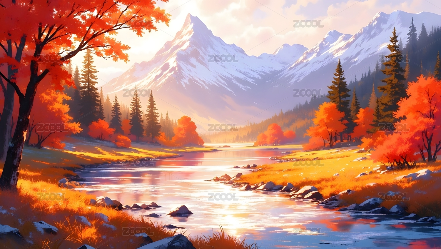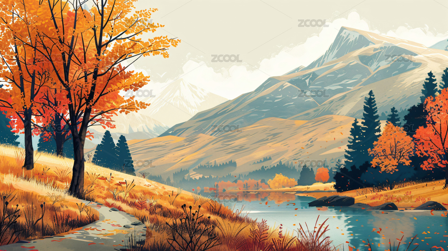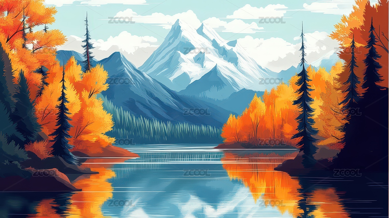 秋日山川风景画主题