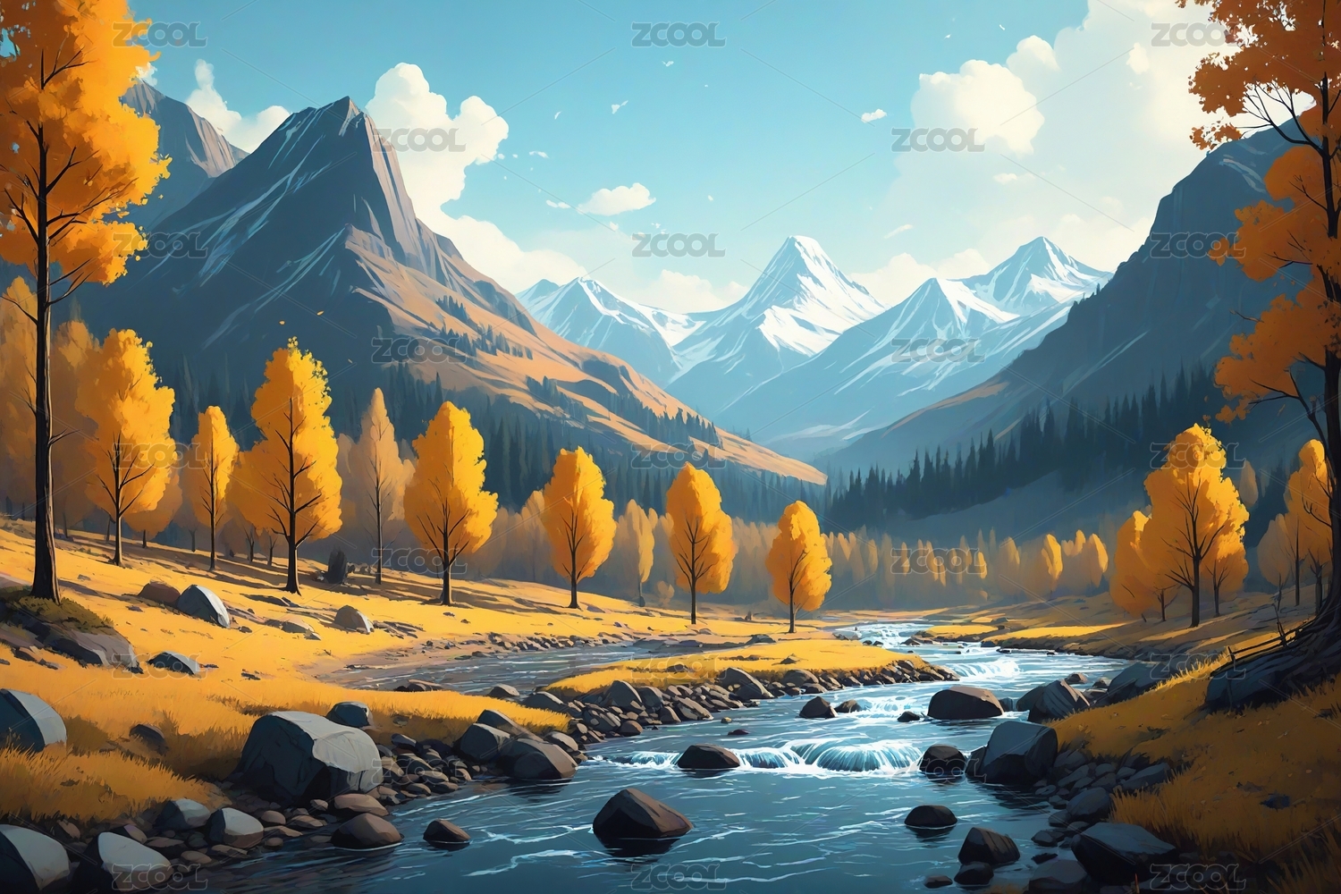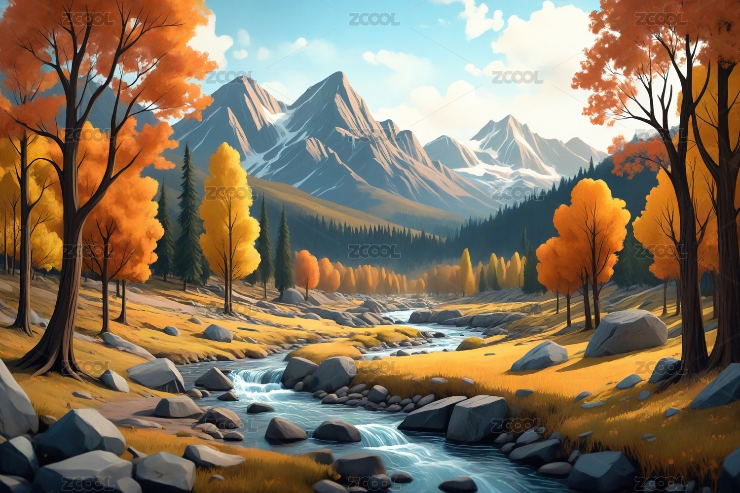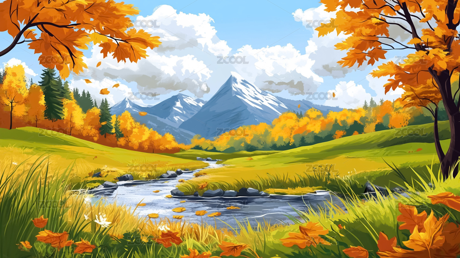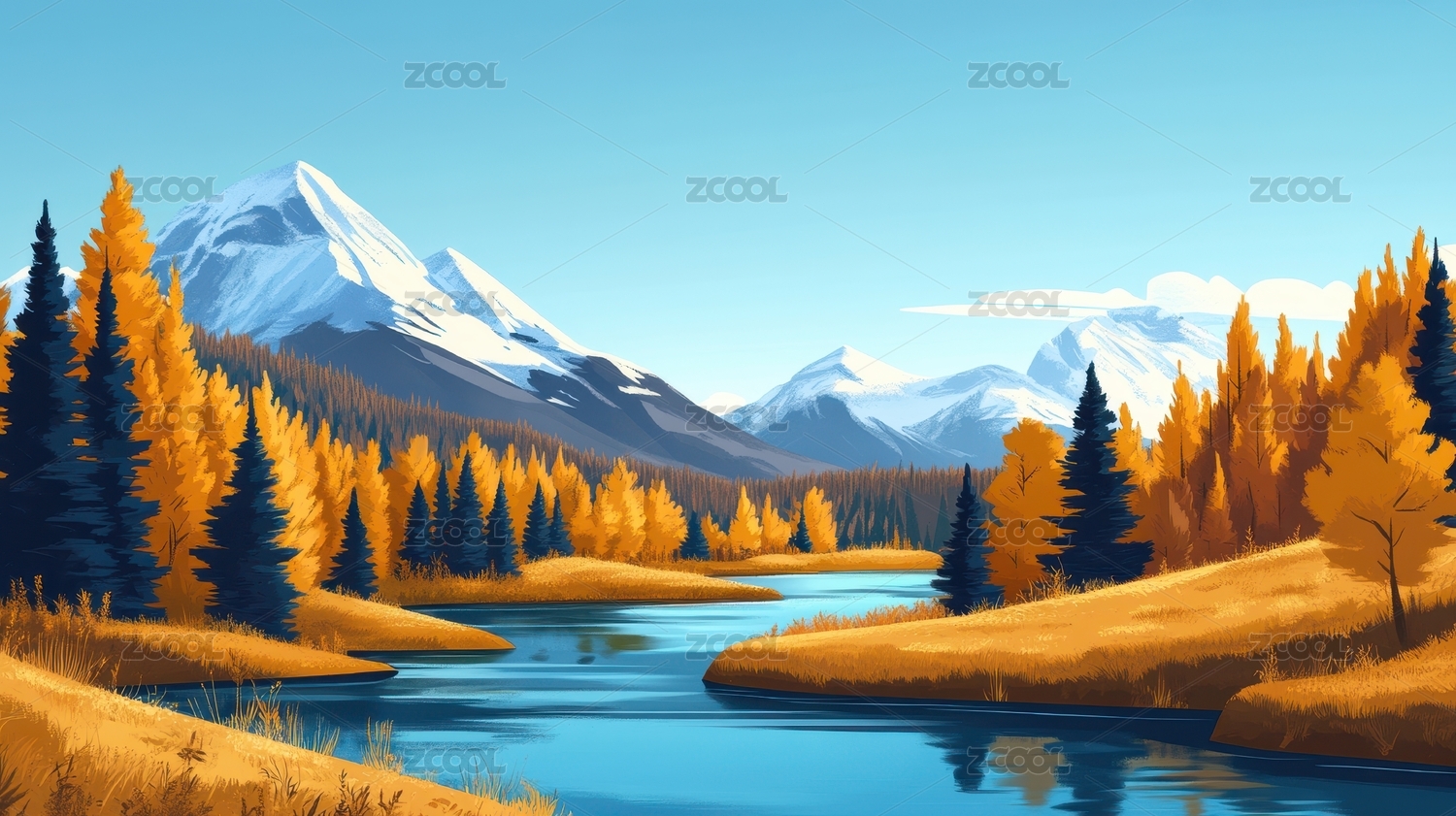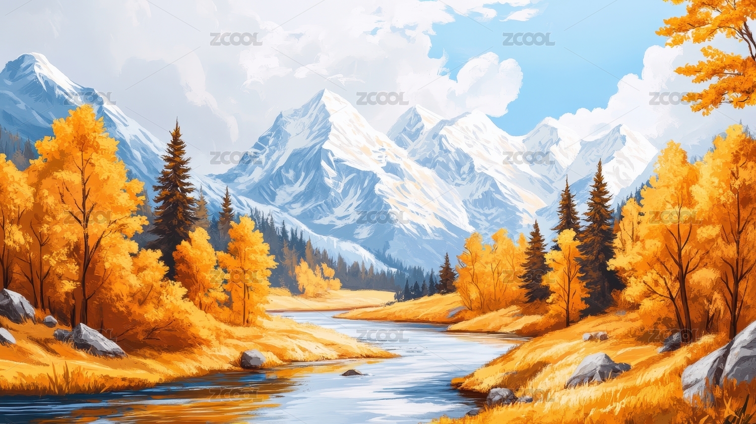 秋日山川风景画主题