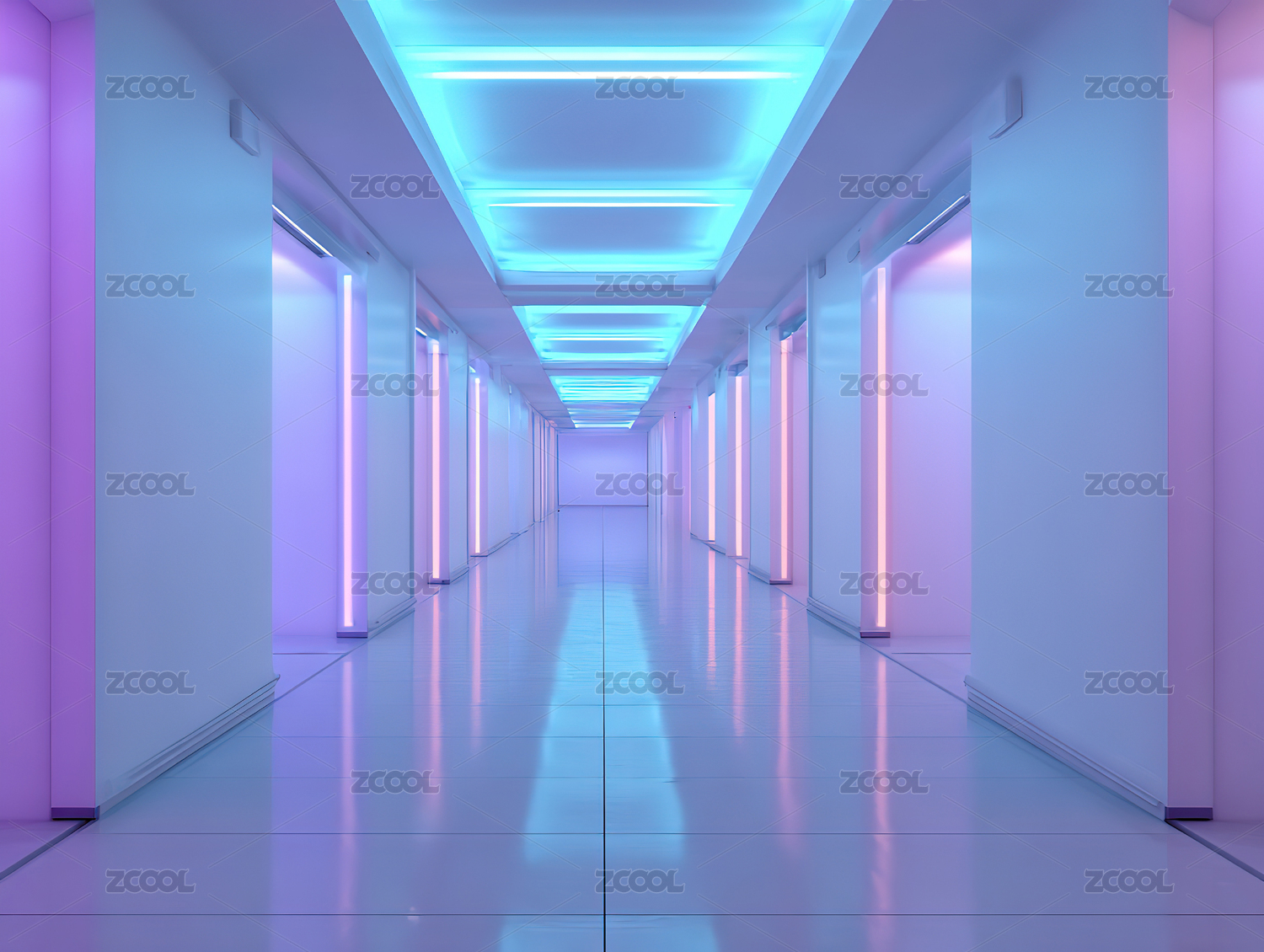 抽象霓虹灯光建筑空间走廊背景时尚朋克摇滚