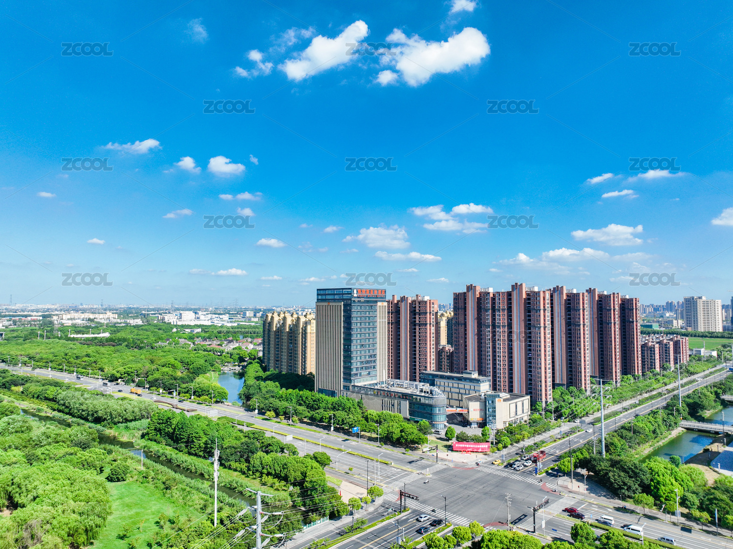 航拍昆山城市大景风光